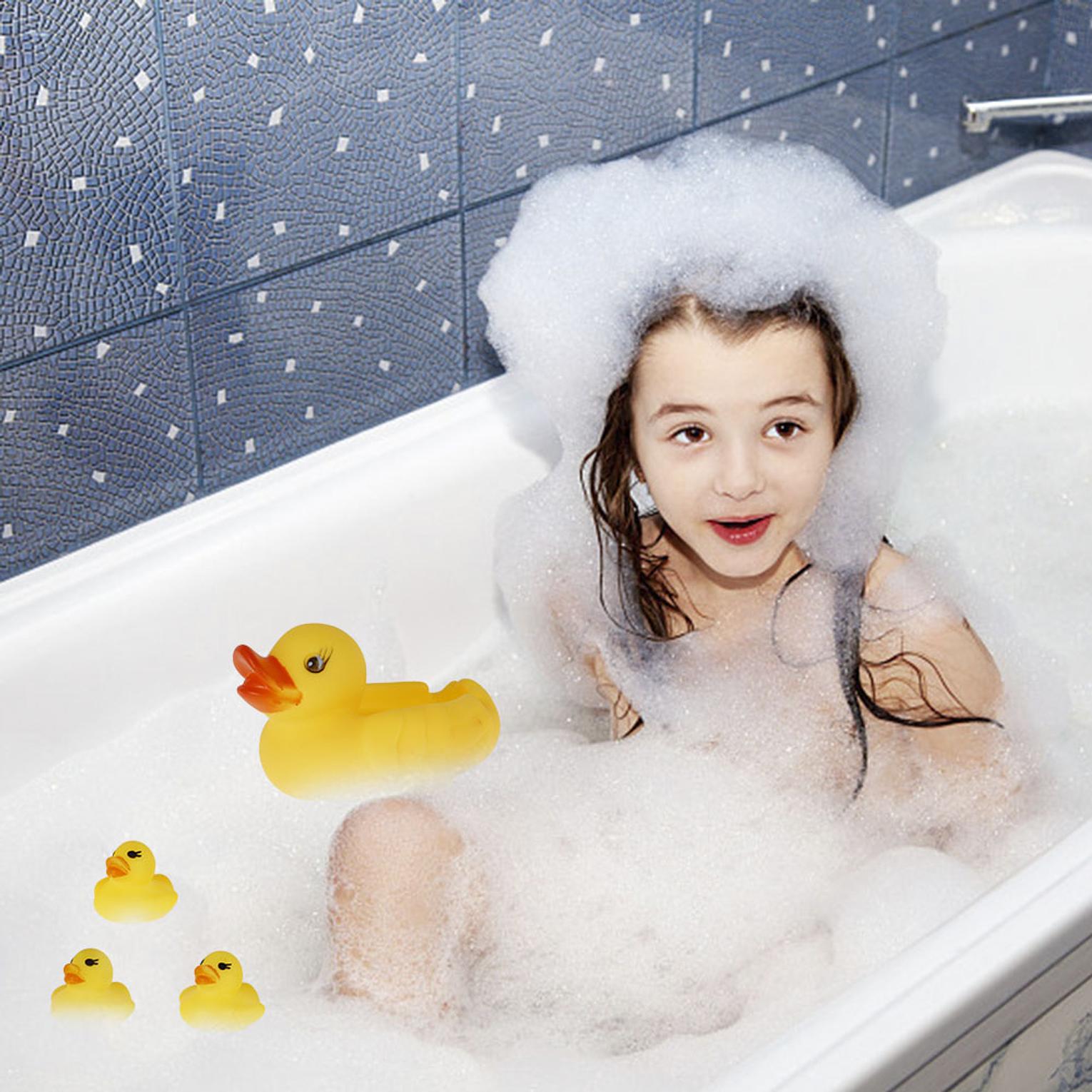 4 piece kids bath toys used to entice or keep the baby busy while bathing. these float upright. bath toy swimming water duck cute soft rubber float ducks squeeze sound play game bath toys gifts for children kids baby