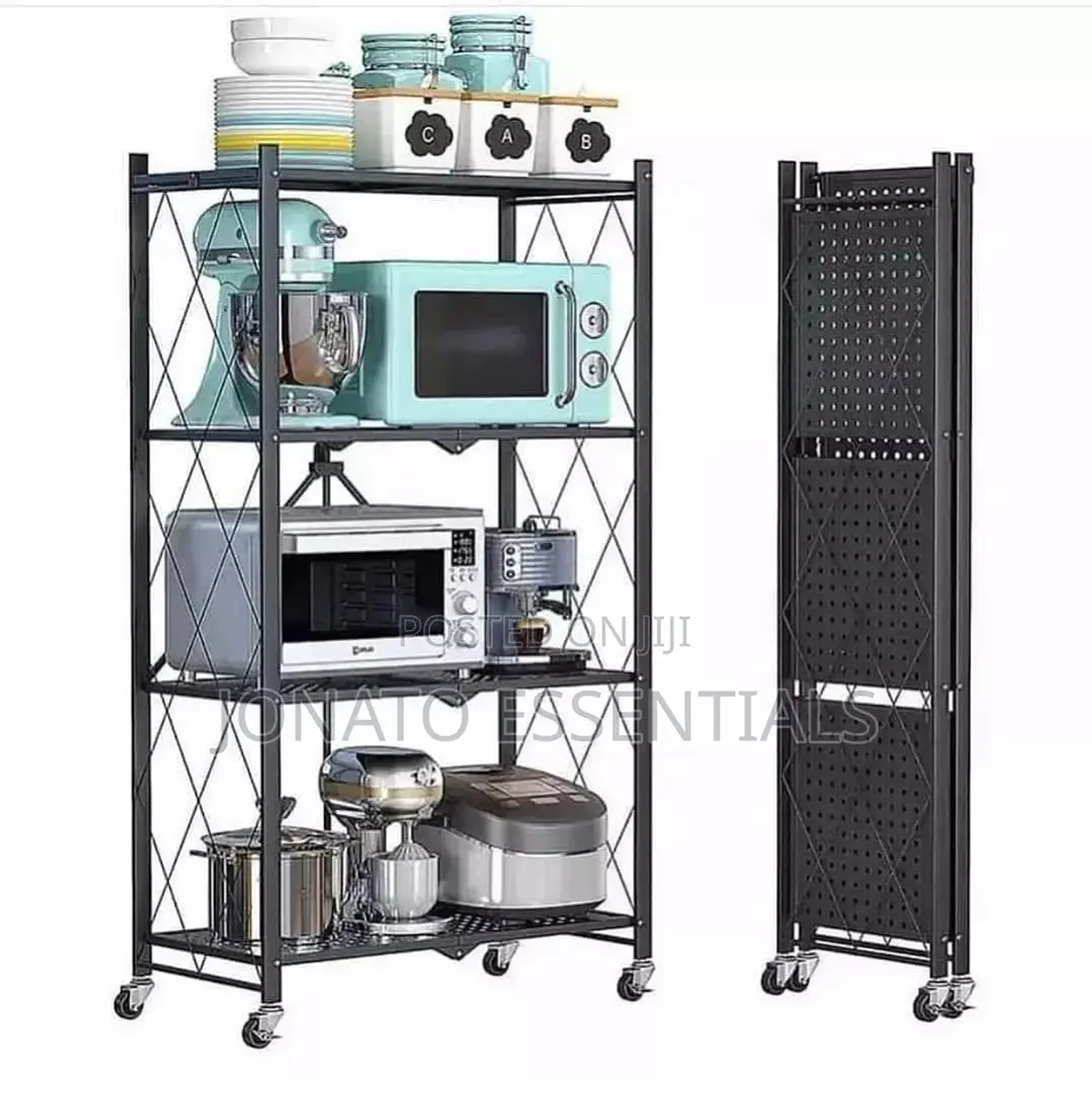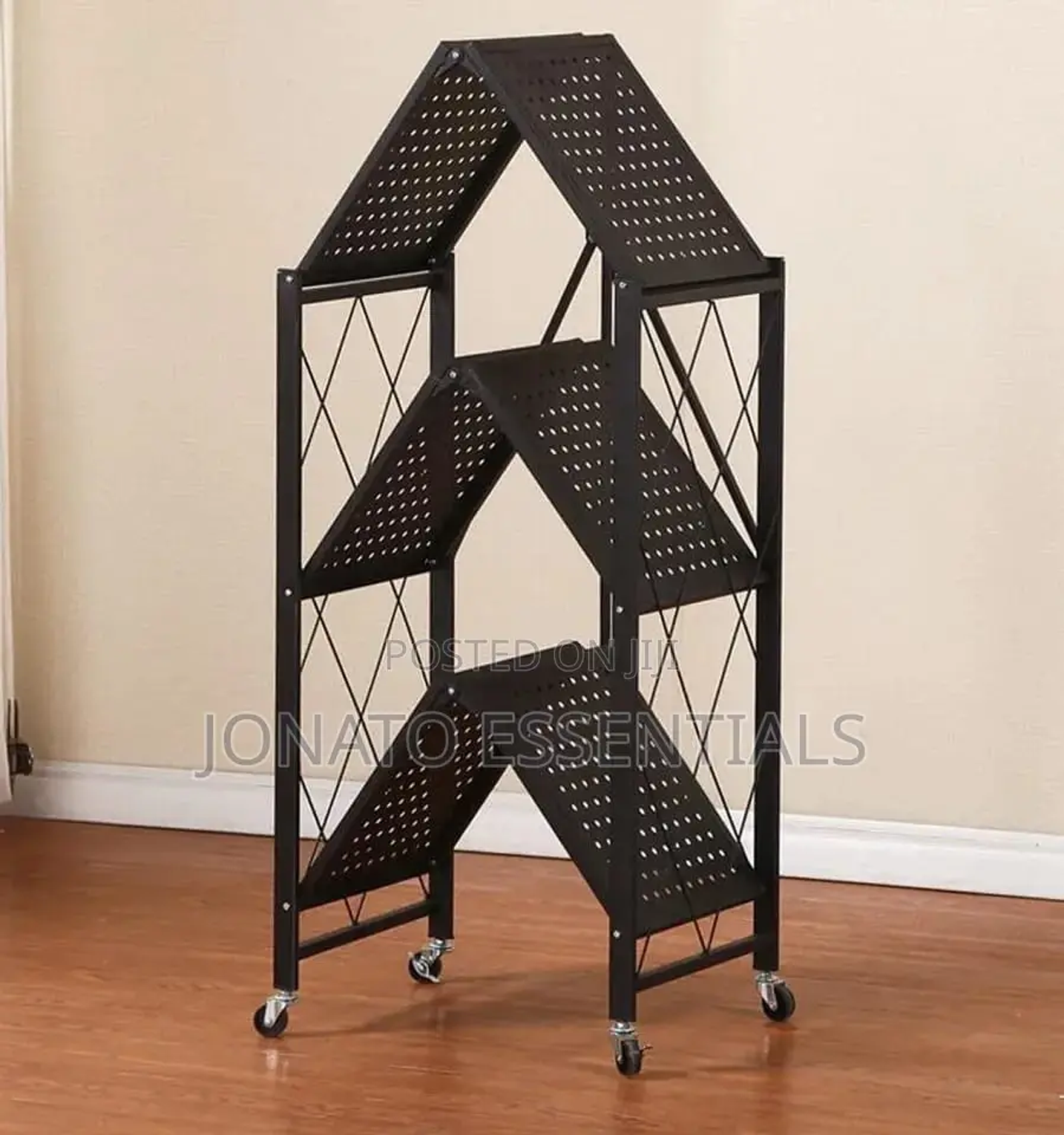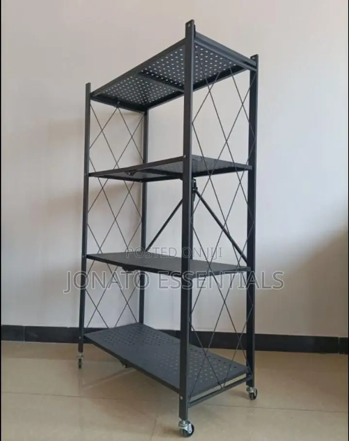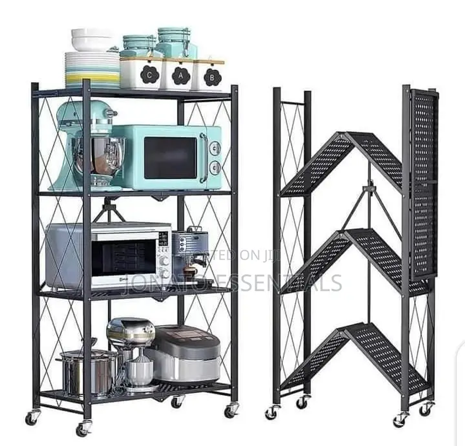 Foldable movable metallic storage rack 4 tier rack 5 layer 9000 stainless steel rack no installation required unfolding in one second movable, strong storage, high flexibility sturdy and durable. a good product for family storage
