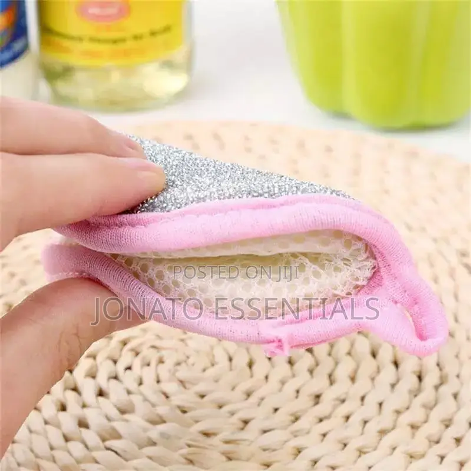 5 piece double sided dish washing sponge double-sided material, one side is a high-density sponge screen, which is soft and easy to foam; the other side is nylon yarn, which is a little harder, and powerfully removes stubborn stains. no oil, no damage to the pot, no shrinkage hanging hole design does not occupy desktop space. 5pcs double side dishwashing sponge dish washing brush pan pot dish wash sponges household cleaning kitchen tools