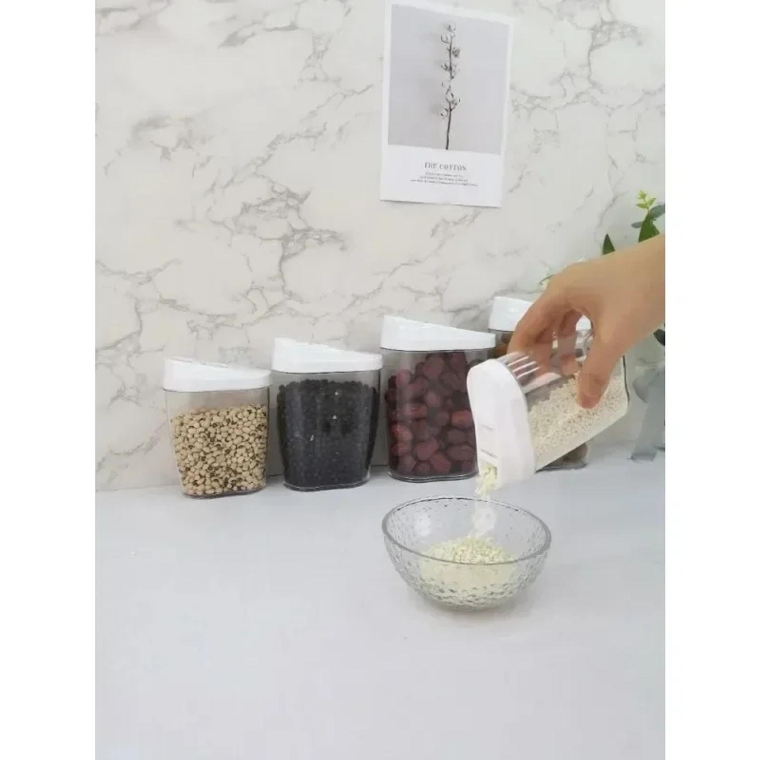 5pcs food cereal snack container storage set with easy pour lids kitchen storage & organizer acrylic clear see through store spices, pastas, cereal , snacks & more keeps food fresh and insect free sizes:1-1440ml 8", 1-960ml 7.25", 1-720ml 6.25" ,1-480ml 5.5", 1-300ml 4.75" ergonomic design for easy pouring.
