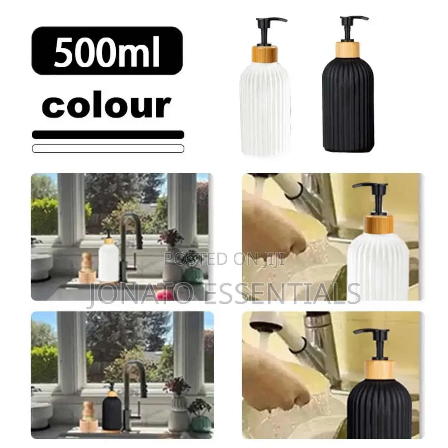 500ml strip soap dispenser with bamboo pump refillable bottle shampoo conditioner lotion body wash empty container for bathroom