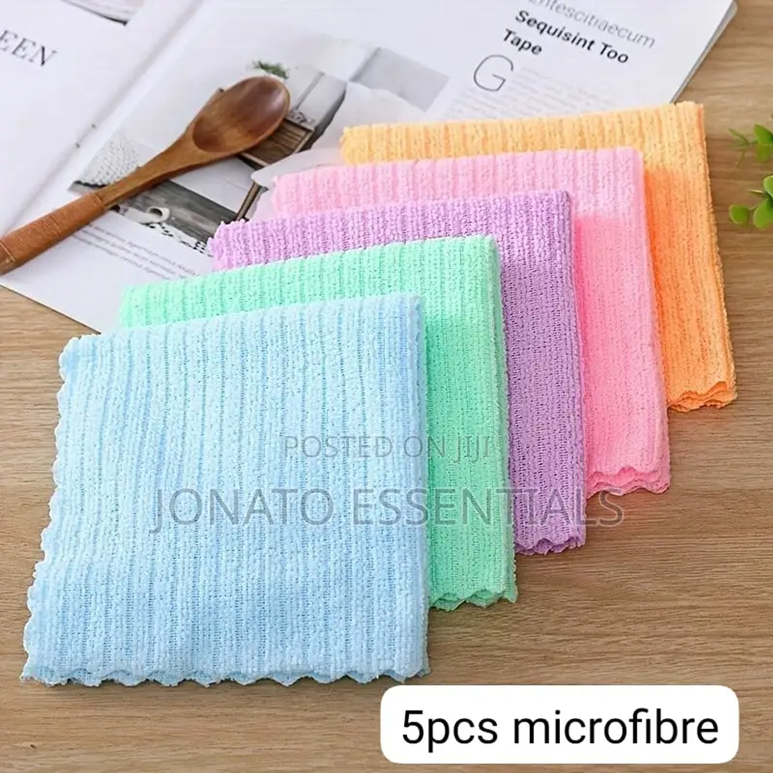 5pc microfiber dishwashing clothes or towels used to wipe utensils and other kitchen appliances. 5pcs household cleaning dishwashing cloth, kitchen specific absorbent cloth, non hair shedding, wipe tablecloths, for cleaning glass, cooking bench, pot, bowl, water tap, lampblack machine.