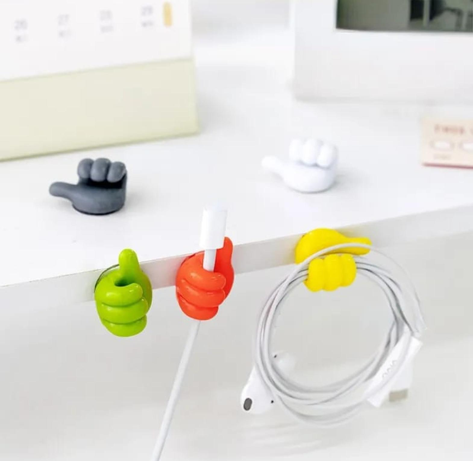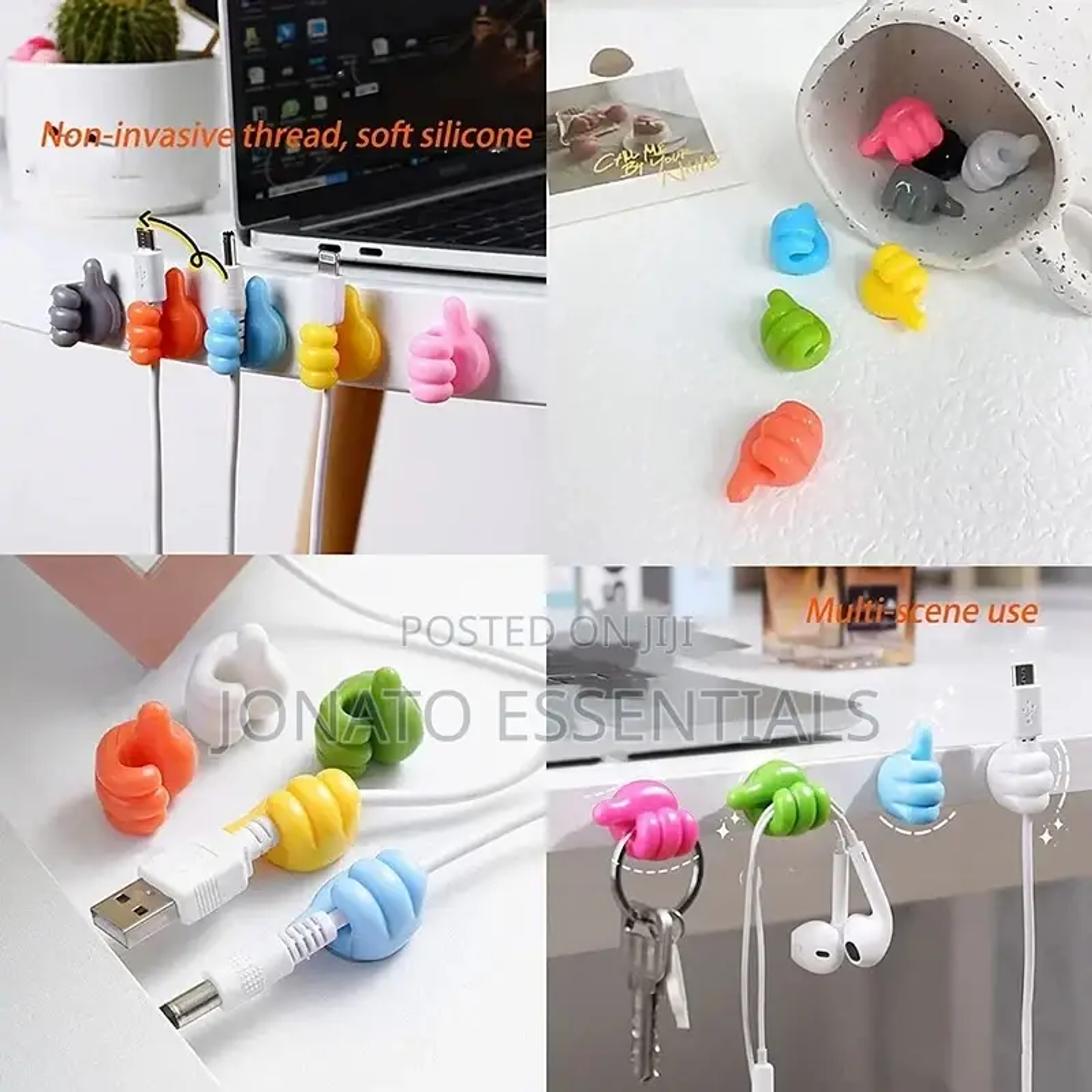 5pc silicone thumb wall hooks set comes in 5 pieces. silicone thumb wall hook:cute and creative self adhesive thumb hook, easy to disassemble. thumbs up cord holder are made of soft silicone material, creative thumbs up shape wall hook can better fix items, cord hooks not easy to fall off,cord holders for desk easy for you to hang on or take off items, suitable for hanging toothbrushes, towels, keys, plugs, cables, kitchenware, desk etc. silicone thumb wall hooks self-adhesive thumb cable organizer clips key hook multi-function wall hangers storage hooks.