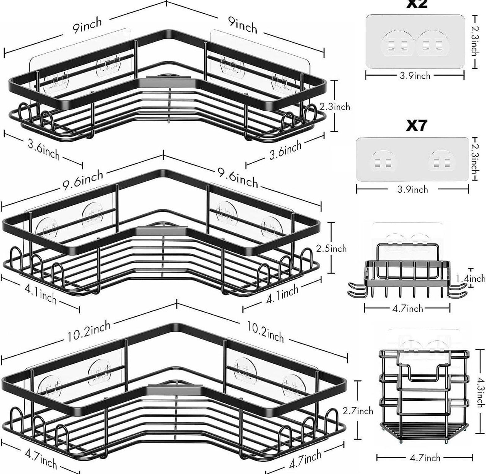 5pcs set triangular shower caddy shelf/bathroom organizer rustproof no drilling incresed load capacity adhesives suitable for smooth flat walls ,eg tiles,smooth marble,smooth wood panels ,smooth metal , rustproof no drilling incresed load capacity adhesives suitable for smooth flat walls ,eg tiles,smooth marble,smooth wood panels ,smooth metal ,glass perfect for small bathrooms, apartments, or dorms, this organizer helps you declutter while adding a touch of elegance. ideal for anyone seeking a functional, high-quality, and affordable bathroom storage solution. 5-piece bathroom organizer, corner shelf for bathroom, rust-resistant bathroom organizer, bathroom storage solutions, space-saving bathroom shelf, waterproof corner organizer, minimalist bathroom decor, durable shower organizer.
