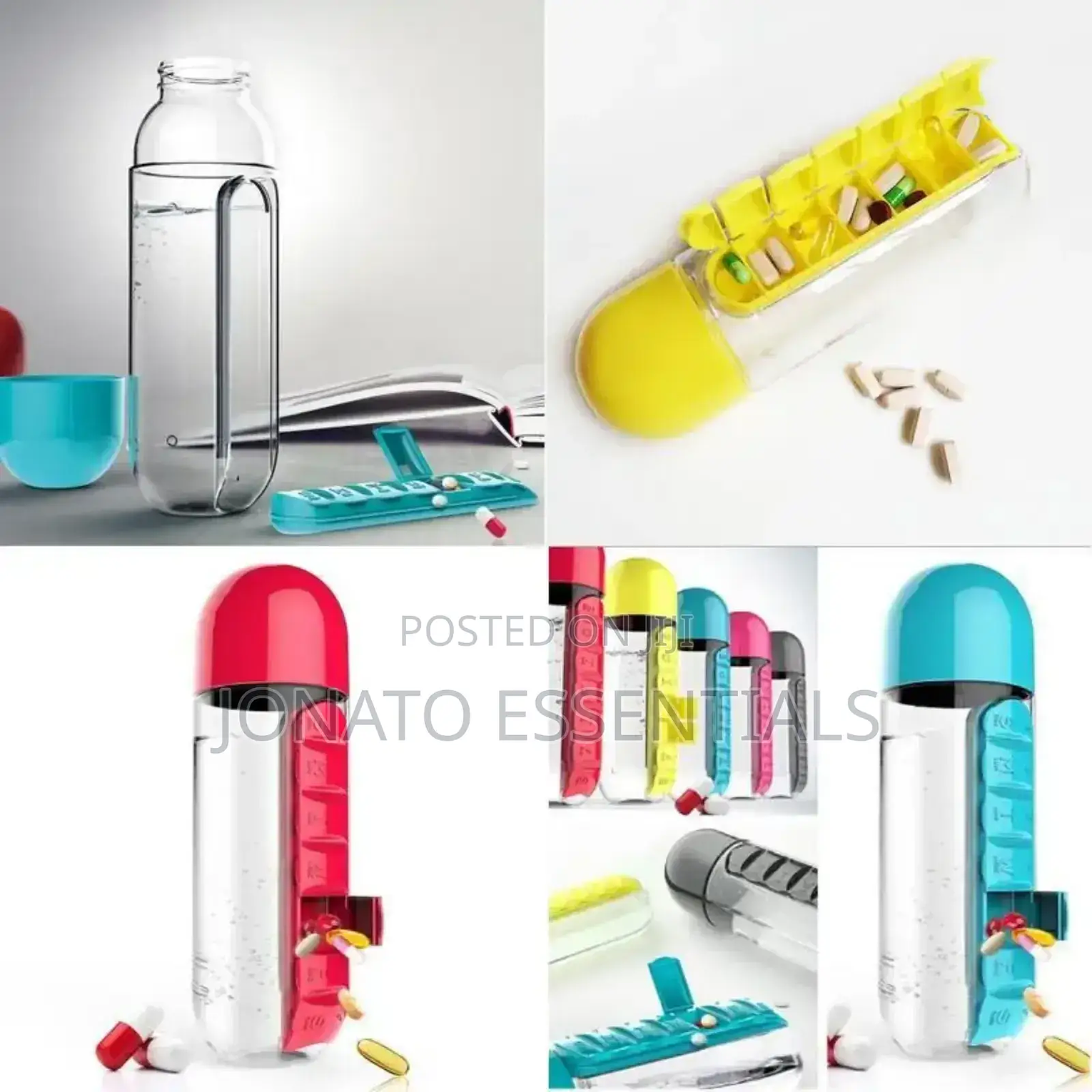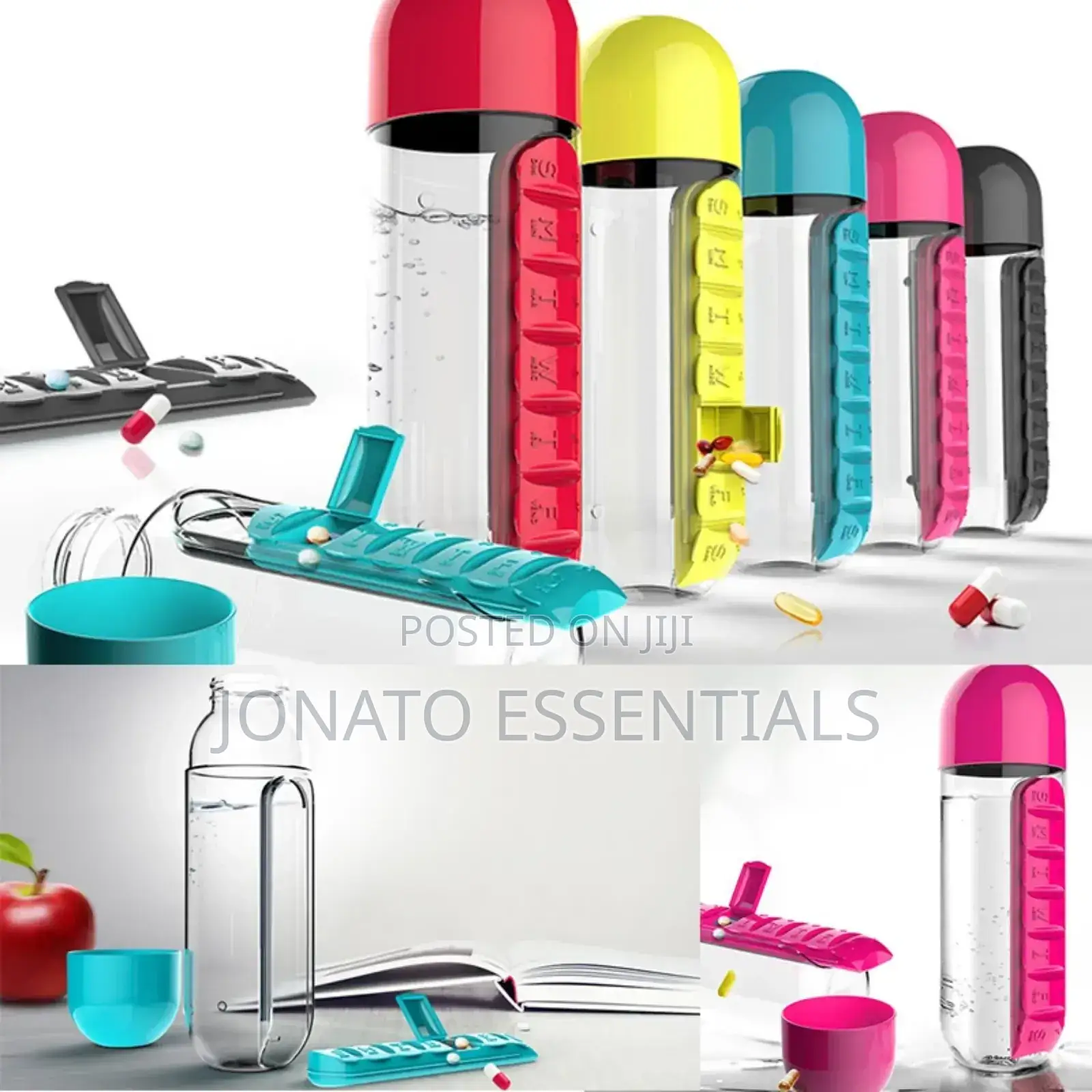 600ml Bottle With 7 Grid Pill or Medicine Box and Organizer