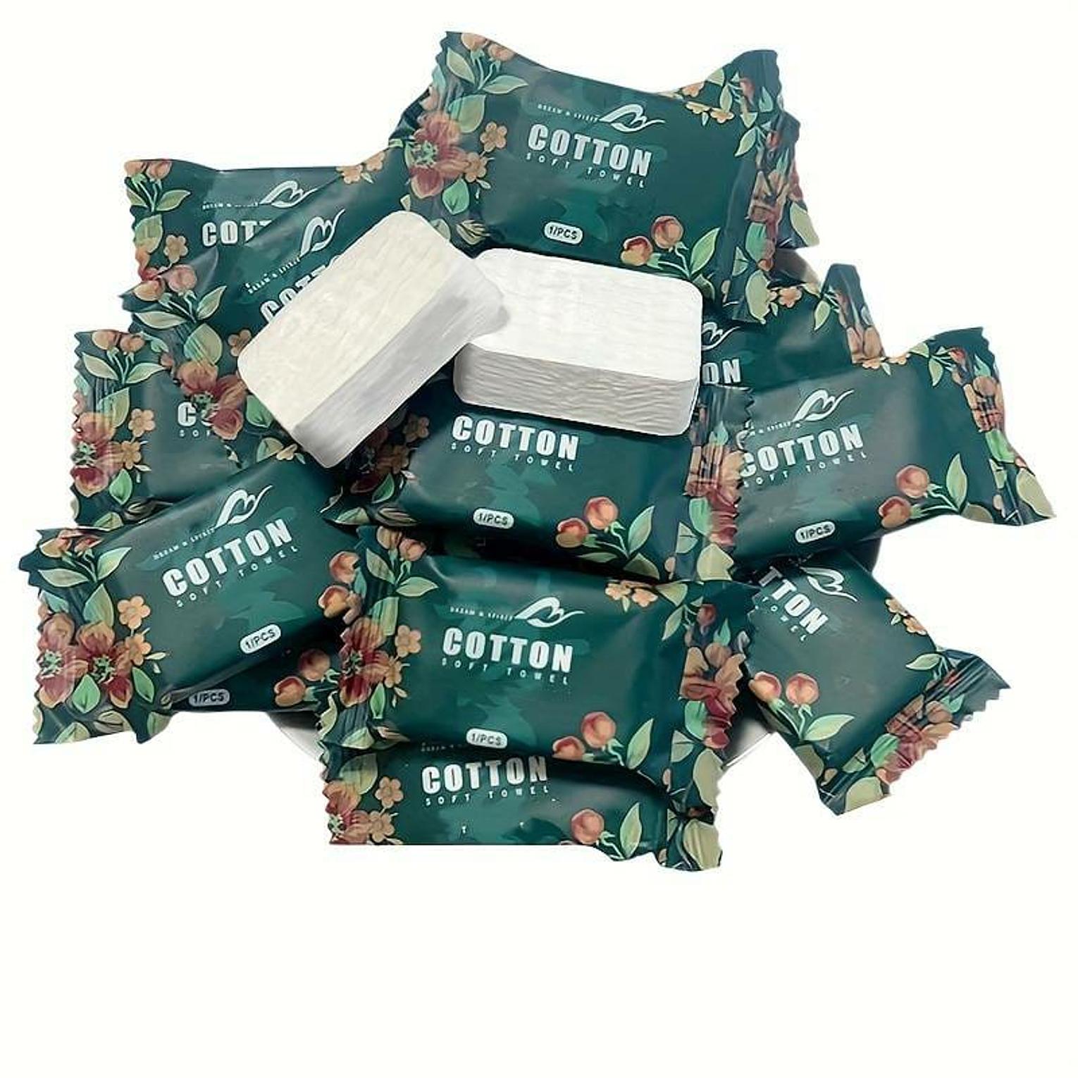 30*60cm 6pcs Disposable Compressed Towel, Travel Portable Package Face Towel, Female Portable Pure Cotton Thickened Candy Cleansing Towel, Compressed Small Square Towel Travel Accessories Bathroom Accessories.