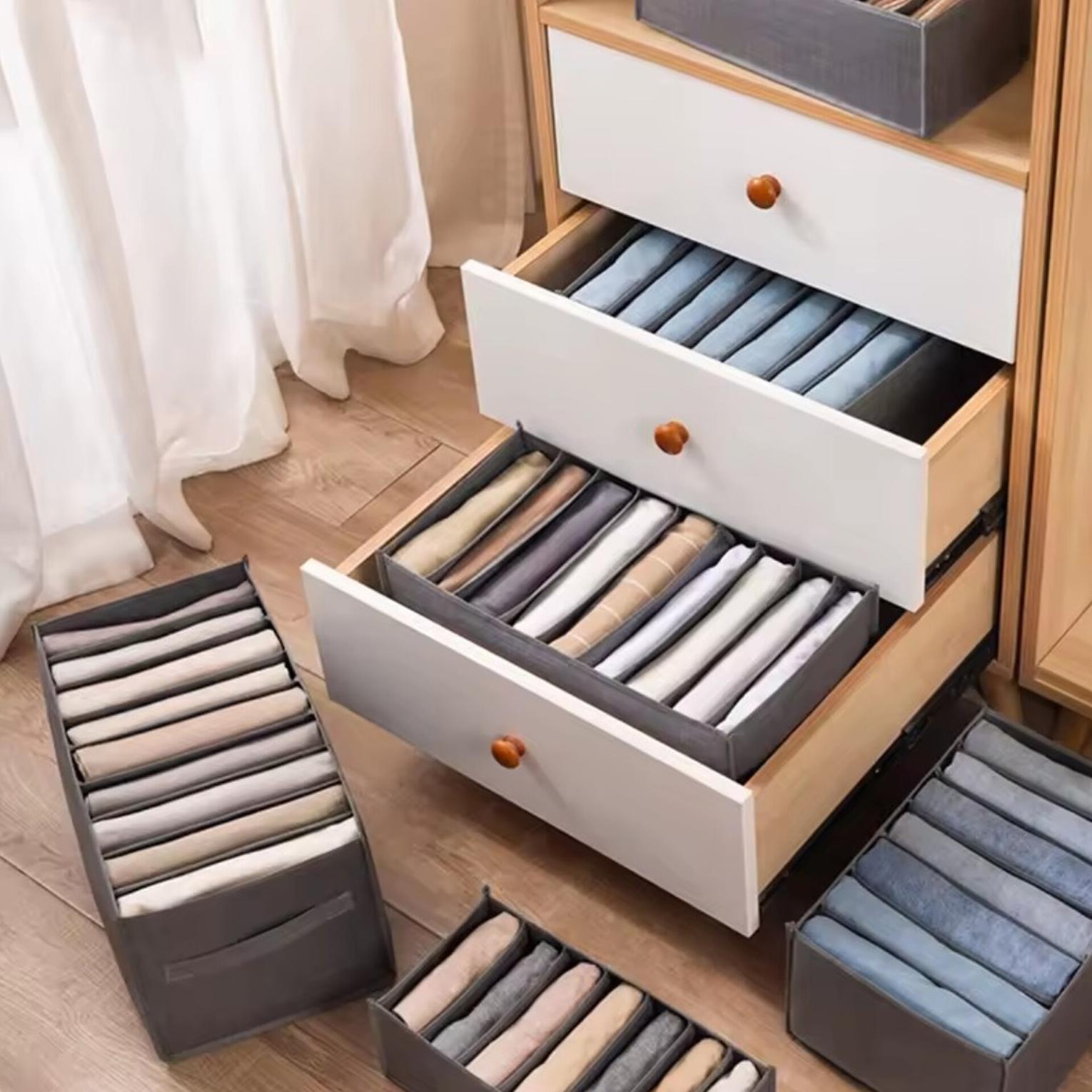 7 grid non woven jeans organizer or closet organizer 7 grid wardrobe closet organizer size: 50×40×20cm perfect for jeans, t-shirts, underwear & socks contemporary wardrobe organizer colour: grey as shown on photo jeans, sweaters, t-shirts, etc storage box cabinet drawer organizer. grey 7 grid storage box non woven durable washable space saving layered arrangement pants clothes underwear wardrobe storage.