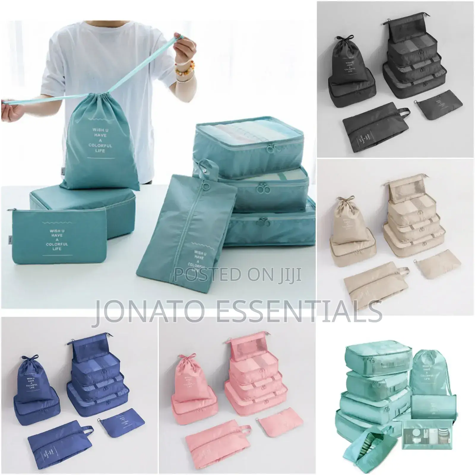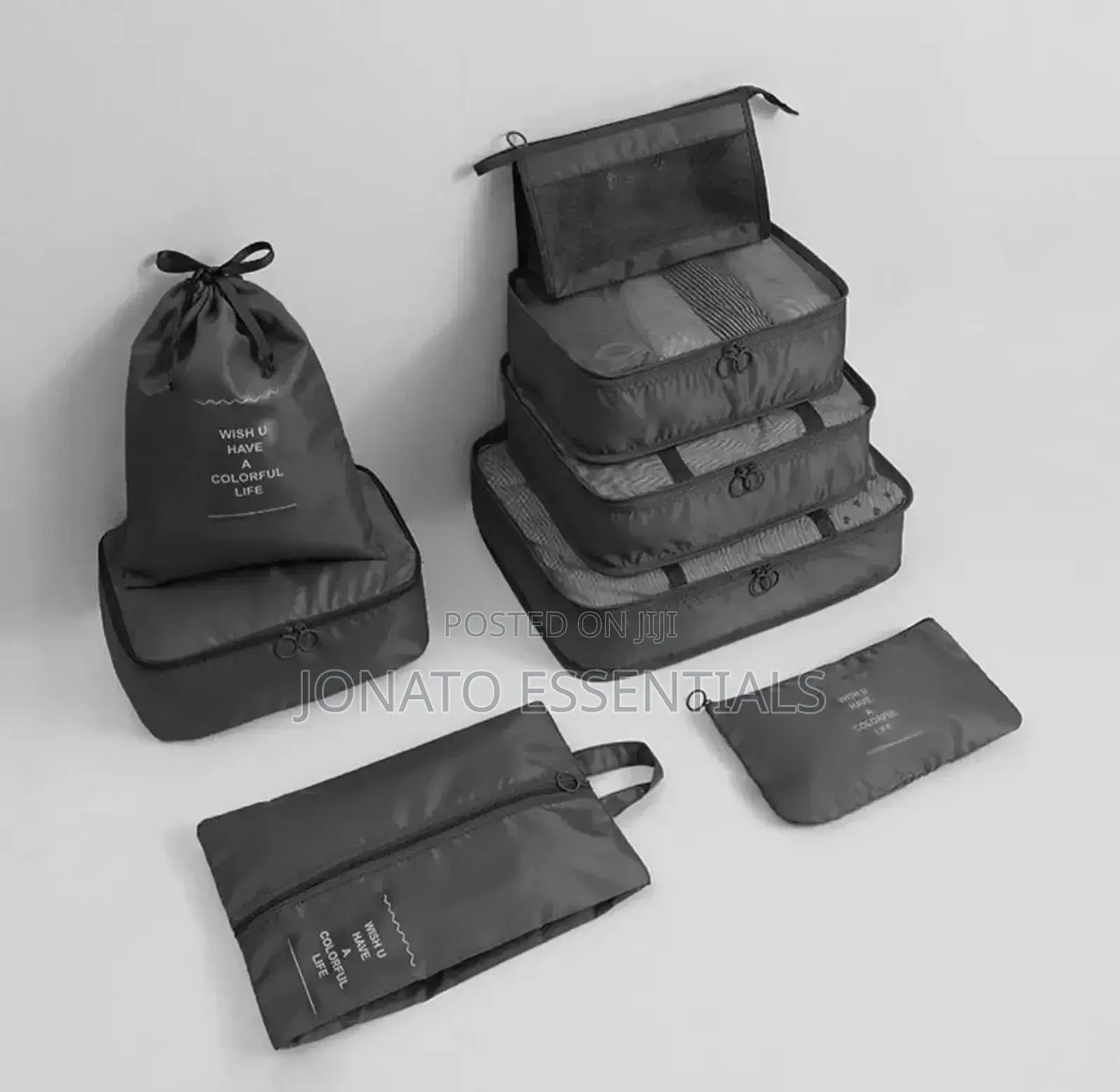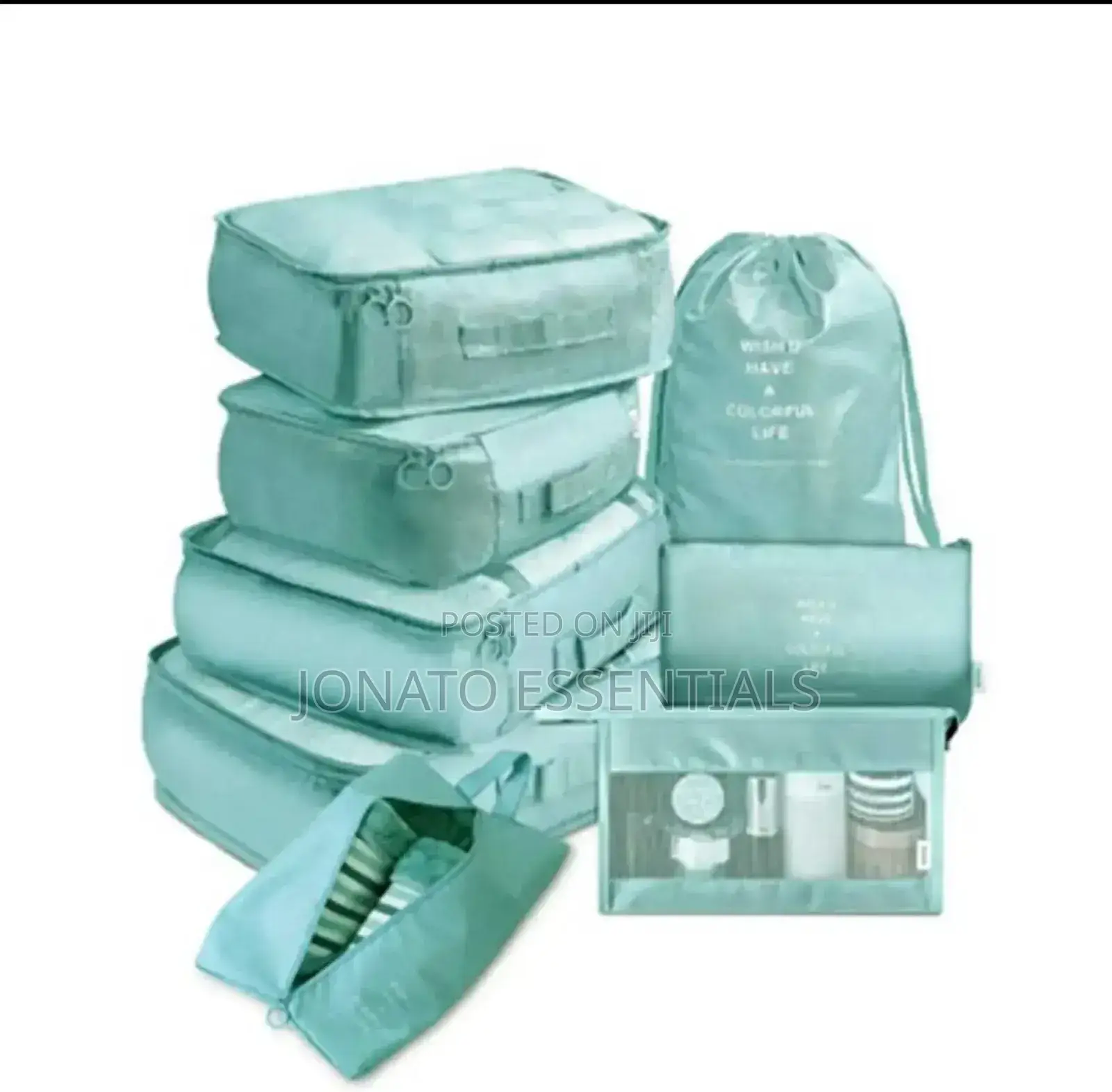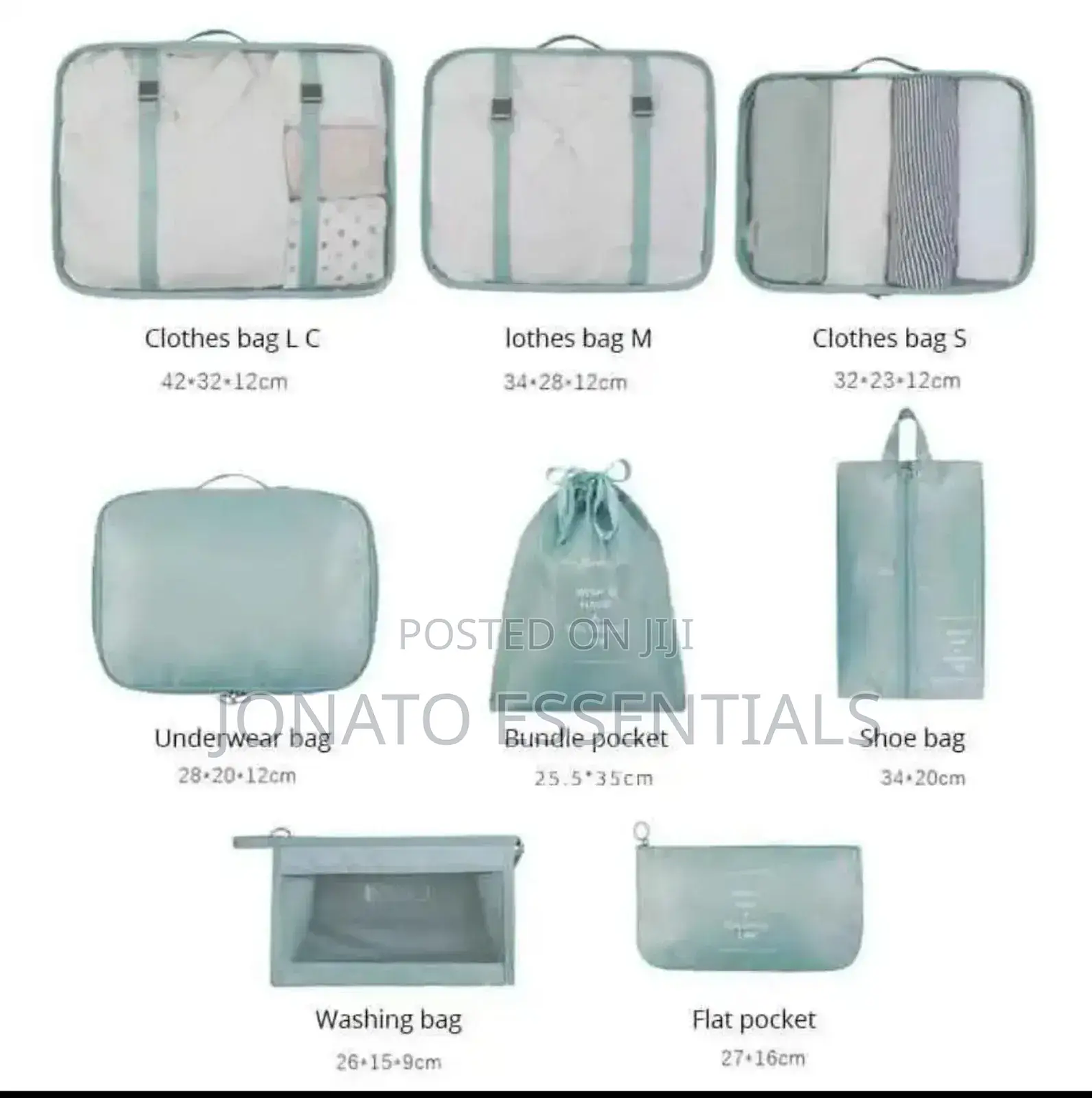 8pcs luggage travel organizers for suitcase with toiletry case 8-pc set includes: 1 large & 2 medium cubes, 2 small cubes, 2 accessory bags, 1 laundry/shoe bag. versatile use :ideal for storing cosmetics, wash items, or any small items that need organized storage. practical and beautiful. speed up packing and classify your goods. made of oxford material with breathable mesh. heavy duty design with double zips makes it easy to open and close travel storage bag set eight-piece cosmetic toiletry classification bag suitcase organizer pouches durable polyester fabric.