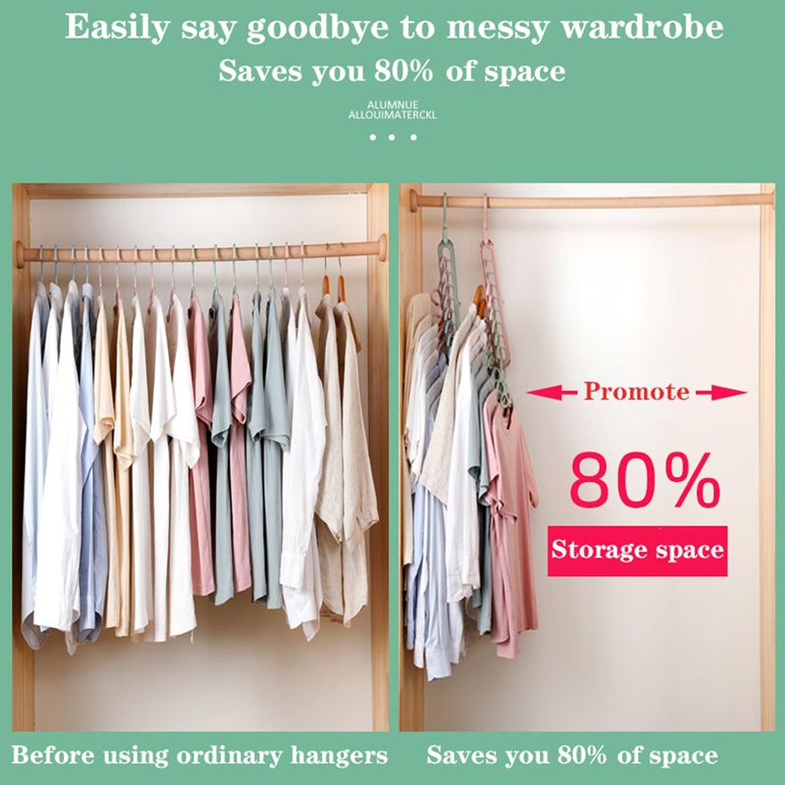 9 hole hanger holder, closet organizer, wardrobe organizer has 9 holes hanger. it is a multi-port space saving hanger 1.this hanger can greatly save your wardrobe space.dormitory and apartment for limited space. 2.keep your shirts, pants and shirts organized and wrinkle-free.flexible joints at both ends for horizontal or vertical use. 3.sturdy pp material, convenient nine-hole branch, the crane can rotate 360 degrees, the track has built-in buckle, can be 4.used horizontally and vertically, lightly stored and dried, is a good helper for your admission. 9-hole clothes hanger rack closet organizer space saving hanger for clothes multi-port clothes rack folding clothes drying rack.