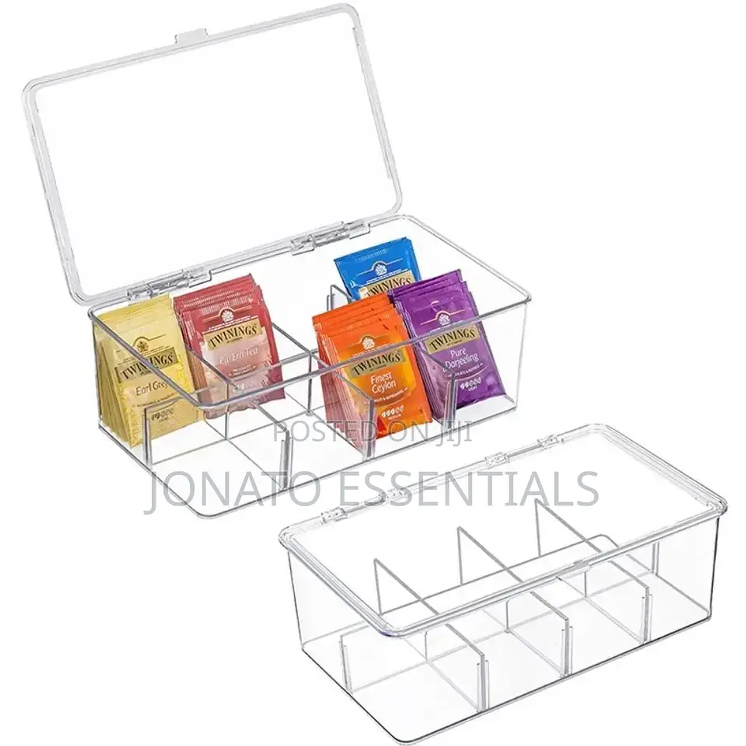 desktop tea bag organizer divided clear tea box household coffee storage box sugar bag holder transparent organizing box.