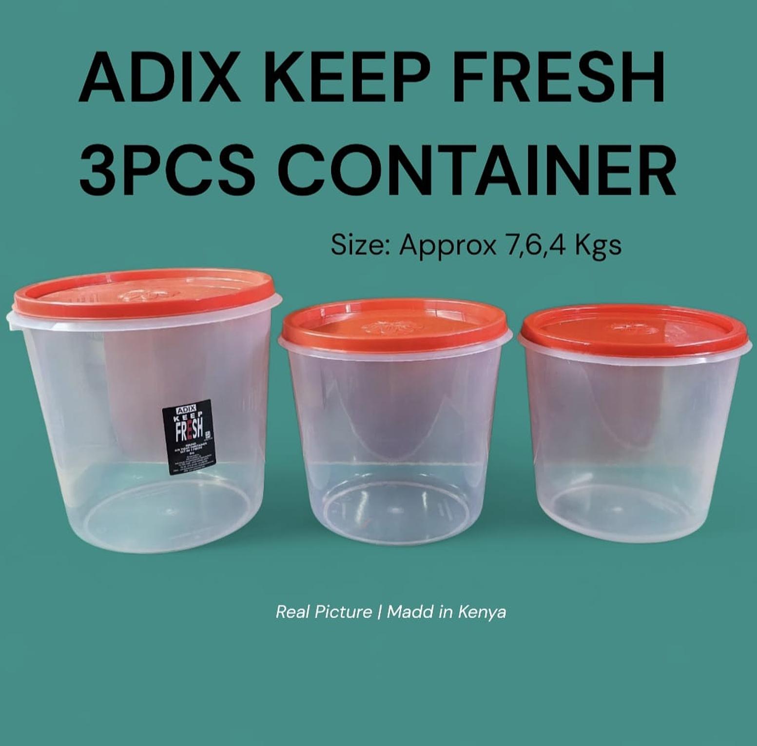 Upgrade your kitchen with the original Adix Keep Fresh 3pcs Container Set, essential food storage for every Kenyan home. This versatile set includes large, medium, and small containers, perfect for keeping maize flour, rice, sugar, and cereals fresh and safe from pests. Made from durable, food-grade plastic with secure bright orange lids, they ensure airtight storage to prevent food waste and keep your fridge or pantry neatly organized. Get this multipurpose kitchen organizer set at the best price today, available for fast delivery across Nairobi and Kenya.