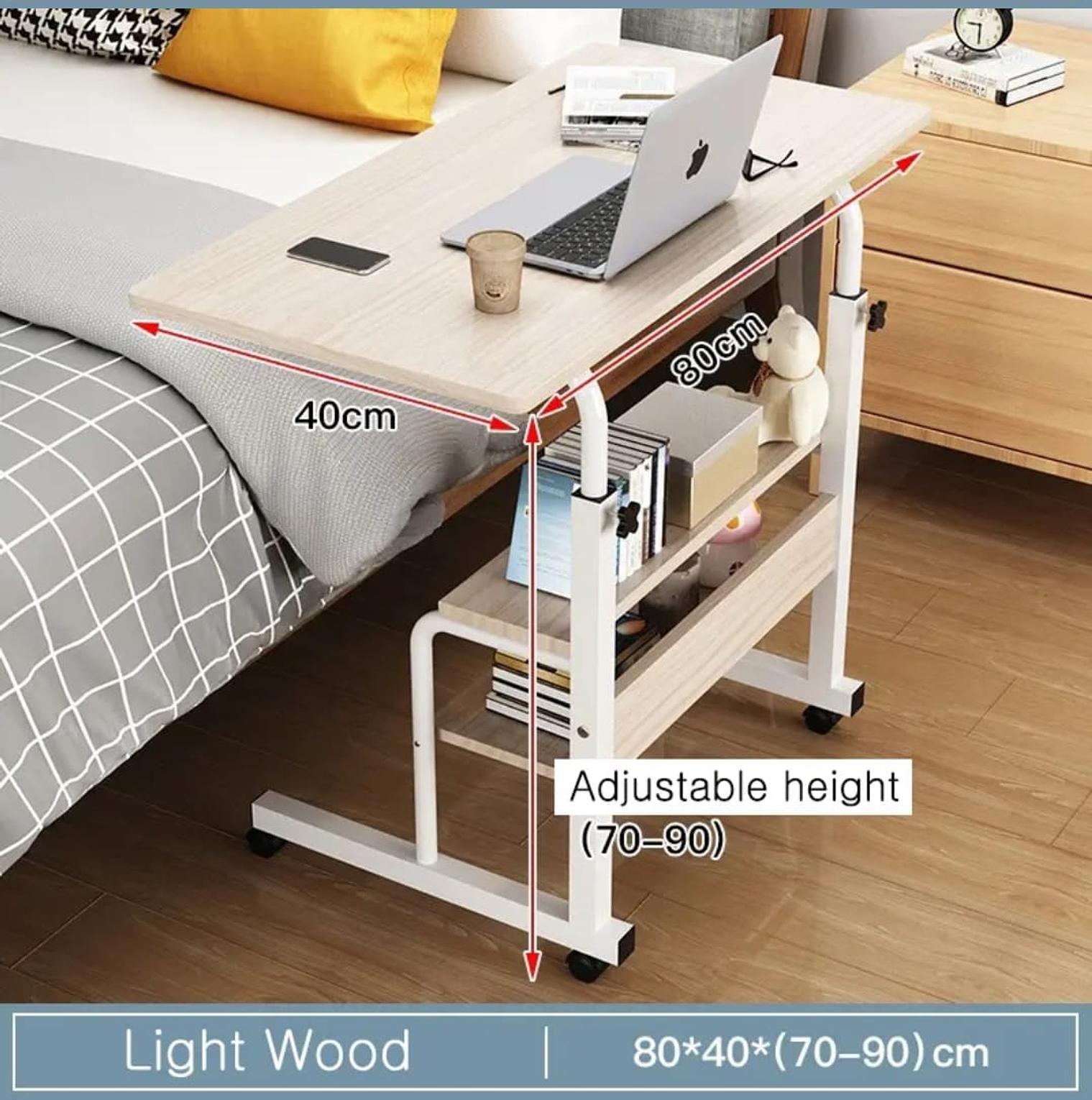 Adjustable bedside laptop table with wheels, study desk laptop table size: w80*d40*h69 -90 upgrade your comfort and productivity with our versatile adjustable bedside table. perfect for your laptop, books, or meals, this movable desk fits perfectly over your bed or sofa. enjoy effortless height adjustment and convenient storage shelves for all your essentials. ideal for students, remote workers, or anyone seeking ergonomic convenience at home. shop now for the best deals on this home office essential. bedside table, adjustable desk, laptop stand, portable desk, movable table, home office furniture, study table, ergonomic desk, couch table, small desk, bedroom furniture, modern furniture