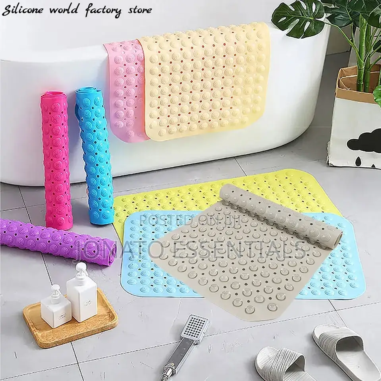 Antislip bathroom shower mat bathroom antislip mats size: 70cm by 40cm foot cleaning and massage, silica gel column, sole cleaning massage, relieve your fatigue. pvc environmental protection material, anti-skid to protect bathroom safety. feel free to bend, flexible and flexible, soft and safe, not easy to crack and deform. bathroom mat anti-slip sucker pvc bath mat with drain hole silicone bathing rugs foot massage pad bathtub soft shower mat.