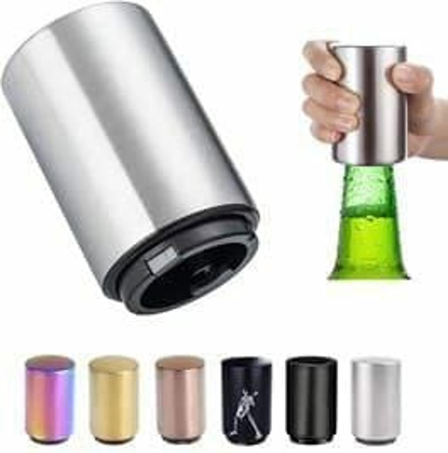 Automatic beer or soda opener opens beer bottles in less than a second which makes this a rather superb novelty gifts. one handed too making this a cool beer gadget. just place this automatic bottle opener on the bottle cap, press it down to the end, and then pop it off. the cap is easily removed from the bottle even with one hand ! perfect for removing the cap of beer, soda and glass bottle. stainless steel beer bottle opener kitchen creative magnetic automatic press lid opener tool portable bar gadget accessories.