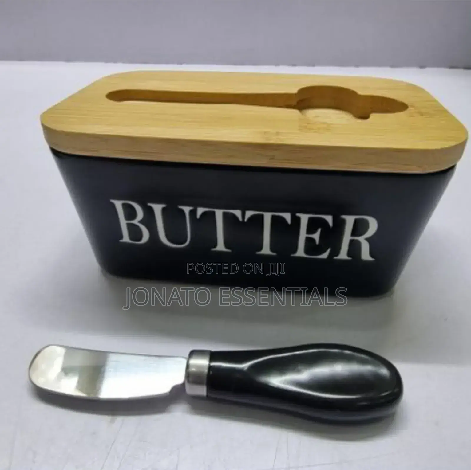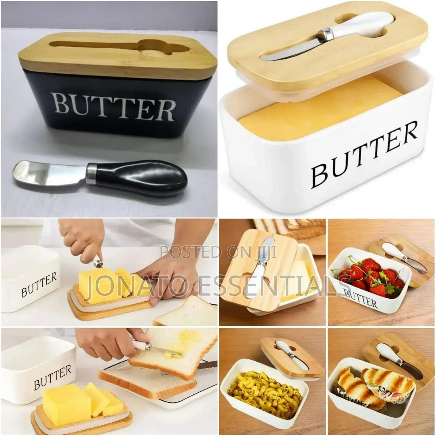 Butter dish and storage box with a butter knife butter spread kit ceramic container, airtight bamboo cover + spread knife. butter pan with knife and lid: this butter pan comes with a lid and a butter knife. when you need to cut butter or spread bread, you can immediately remove the groove of the butter knife for use. 2. unlike plastic materials, our ceramic butter containers use professional grade non stick ceramics, which are suitable for use in microwave ovens when butter needs to soften. and it is also easy to care for, just rinse with water or put in the dishwasher. ceramic butter container box restaurant seal storage boxes cheese box with knife bamboo lid butters slicer butter dish tableware.