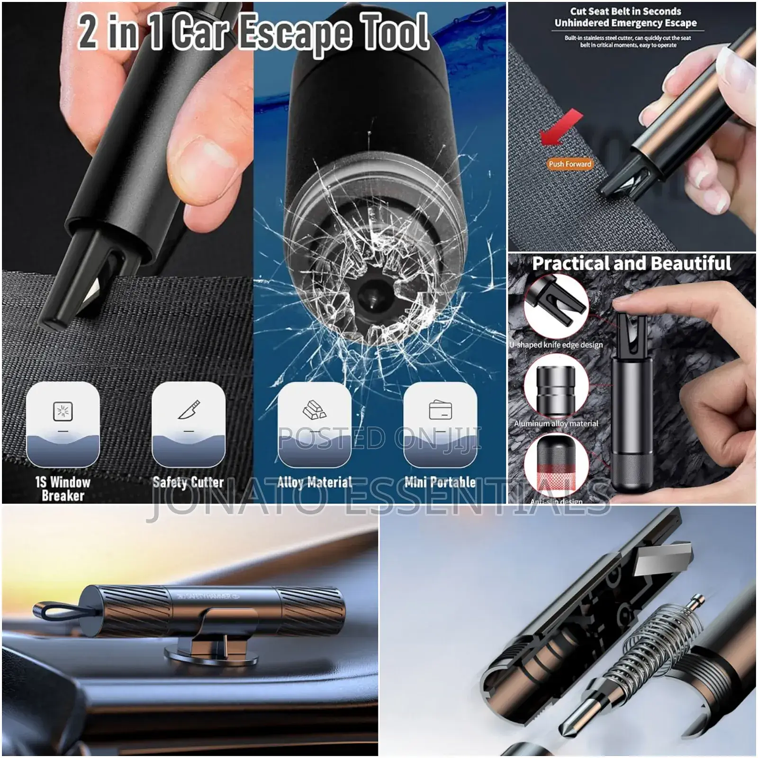 hidden design, built-in stainless steel cutter, can quickly cut seat belts in critical moments, u-shaped hidden knife edge design. fingers can not go deep, safe not to hurt hands, beware of scratches.