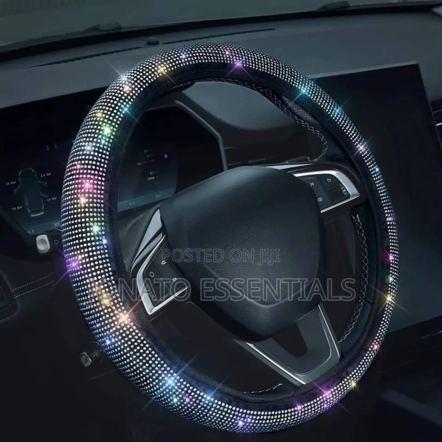 Car steering wheel cover fancy super stretching sparkling steering wheel cover crystal steering wheel cover it is a breathable antislip steering wheel cover that enables a driver if has sweaty or slippery hands to steer comfortably. it is also a decorative piece in the car. car steering wheel cover with crystal diamond sparkling car suv steering wheel protector vehicle auto decoration carbon fiber