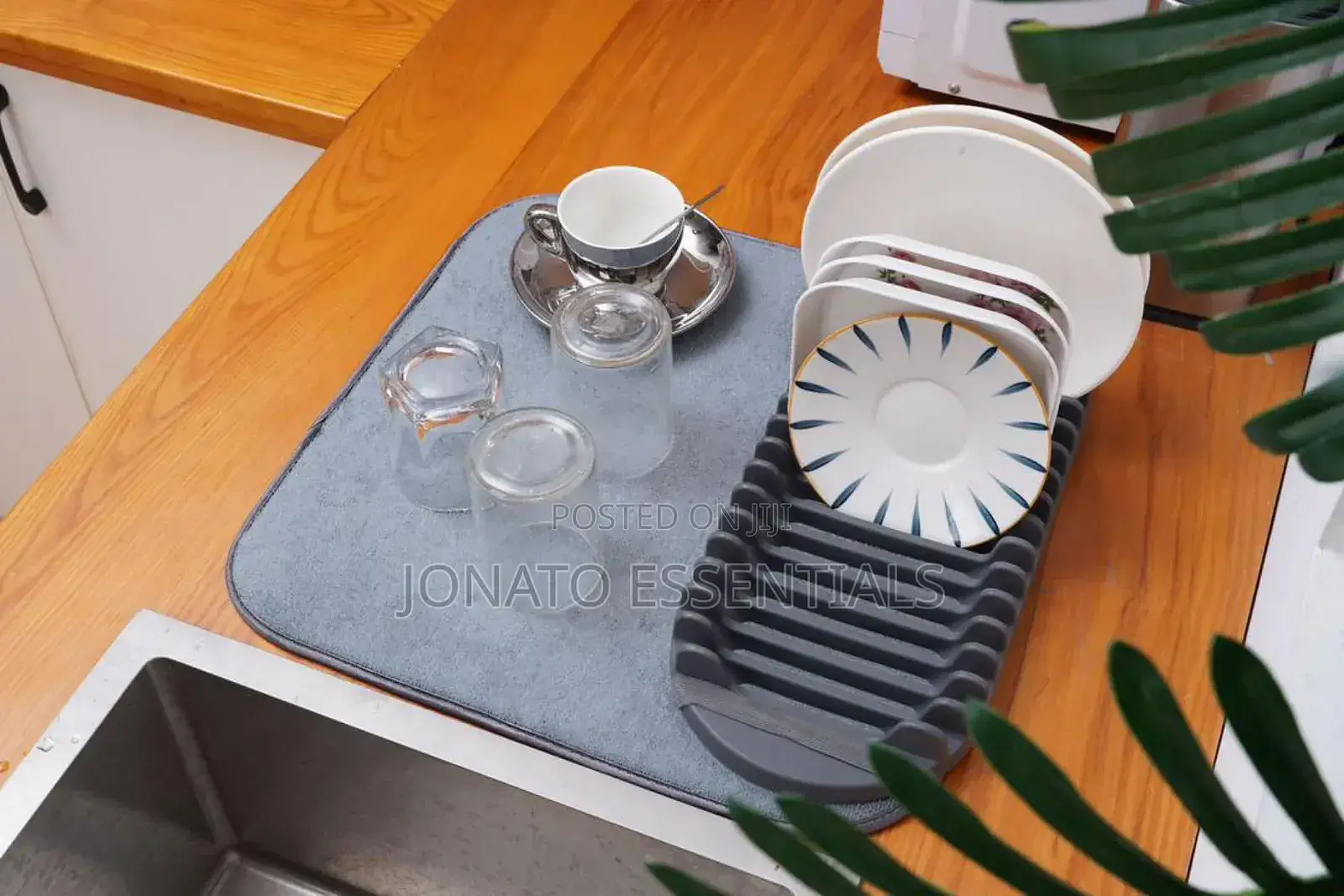 superabsorbent microfiber mat: the perfect combination of form and function, the microfiber mat absorbs water from drying dishes while protecting your countertop from scratches and water buildup.