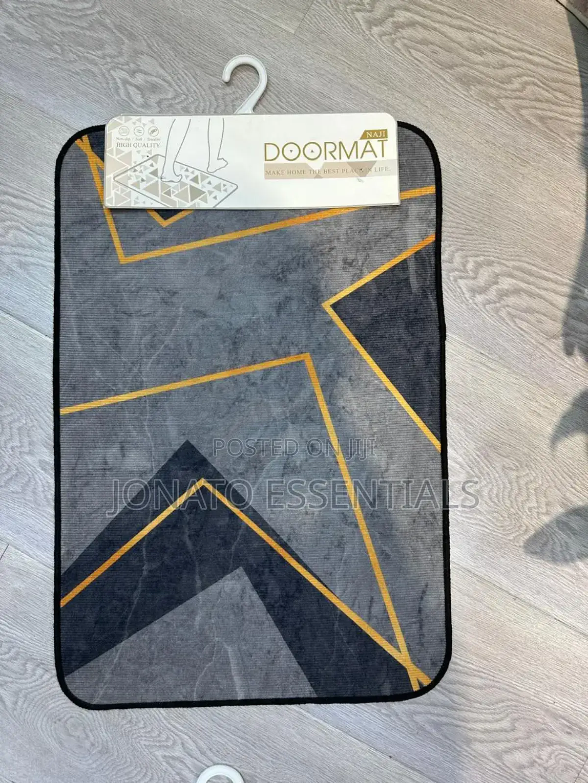 doormat, entryway mat, floor mat, welcome mat, indoor doormat, outdoor doormat, geometric design, modern style, gold accents, non-slip, absorbent, durable, easy clean, home decor, stylish doormat, contemporary mat, door mat.