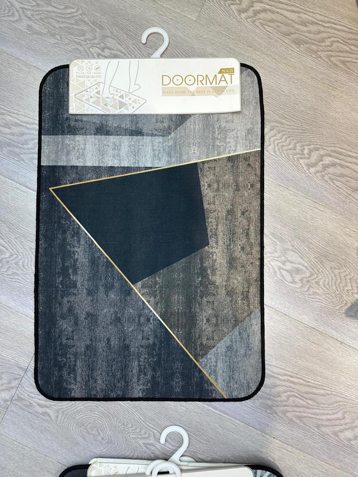 Geometric doormat with gold accents - stylish & non-slip entryway mat antislip door mats size 40*60. this eye-catching entryway mat features a contemporary geometric design in shades of deep blue, grey, and elegant gold accents, adding a touch of modern luxury to your doorstep. crafted for both indoor and outdoor use, this doormat is not only decorative but also highly functional. the durable material is designed to be absorbent, effectively trapping dirt, dust, and moisture to keep your floors clean and dry. doormat, entryway mat, floor mat, welcome mat, indoor doormat, outdoor doormat, geometric design, modern style, gold accents, non-slip, absorbent, durable, easy clean, home decor, stylish doormat, contemporary mat, door mat.