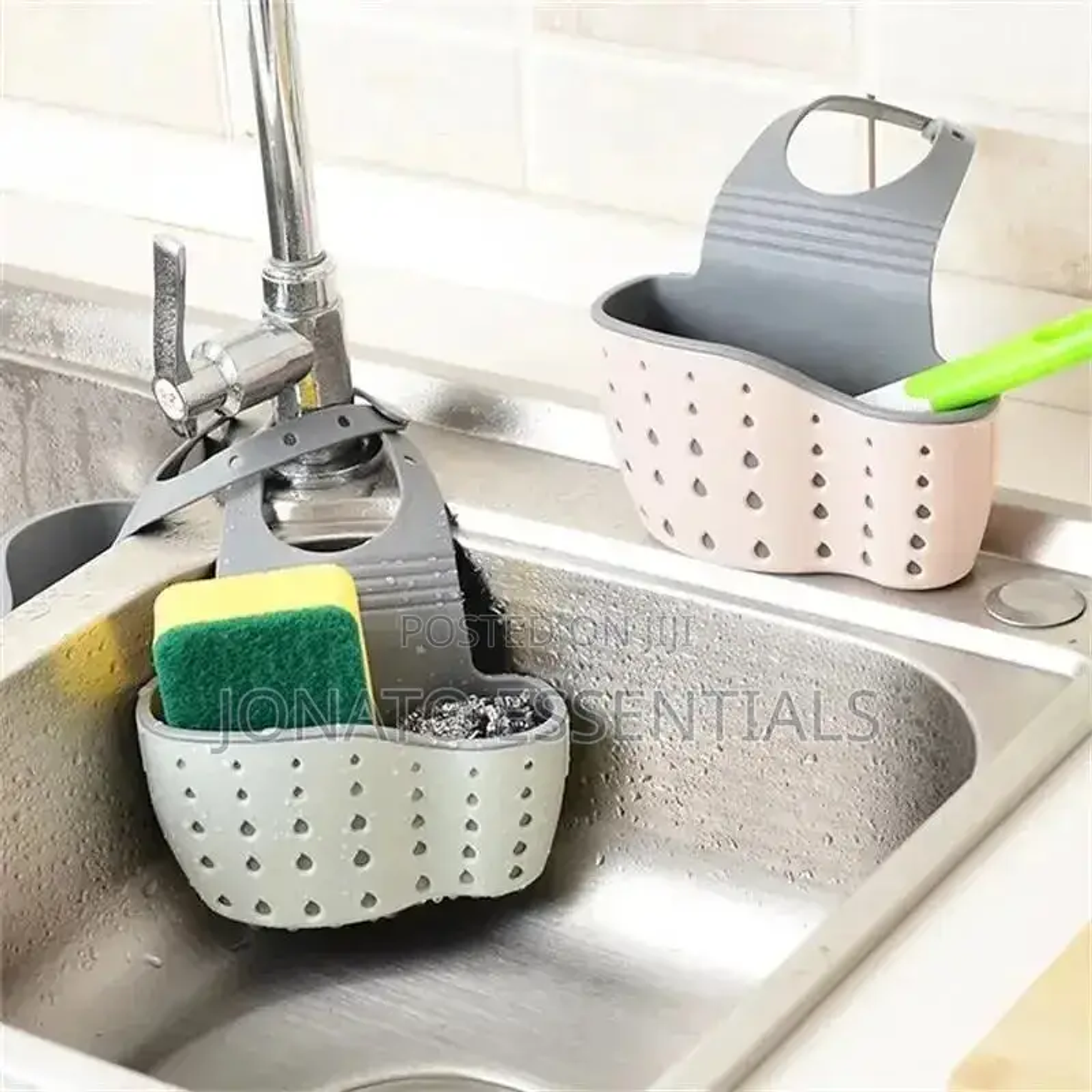 Double sided sink sider, sink organizer material: tpr+abs size: 22*12cm for soap, sponge, toothbrush, etc kitchen double layer sink hanging bag sponge steel wire ball storage hanging basket sink draining basket faucet water pool bag.