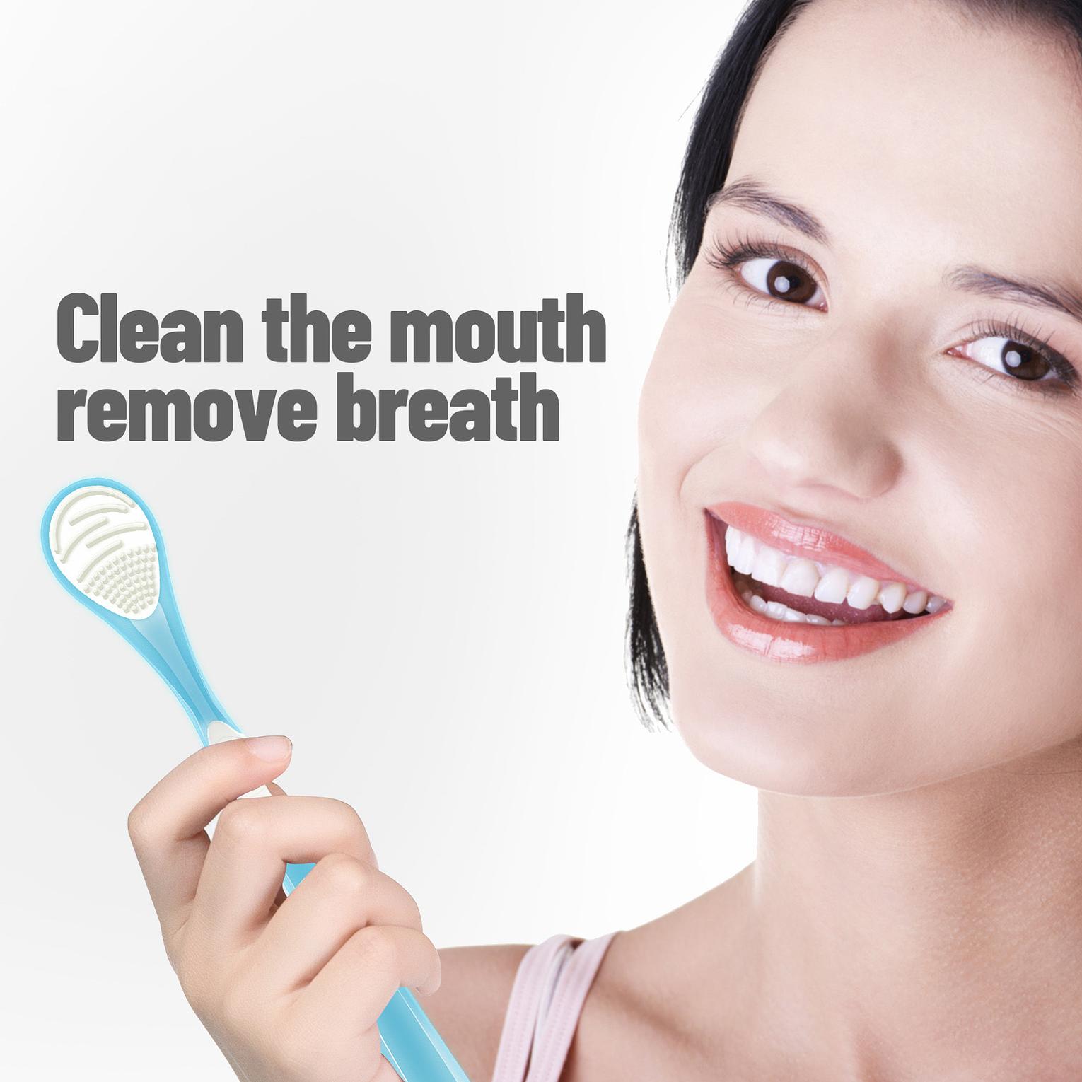 Double sided tongue cleaner and scrapper steps for usage: 1. moisten the tongue coating with clean water, and deepen the tongue. use the side with the tongue brush to clean the tongue from the inside to the outside several times. 2. rinse tongue and mouth with water after scraping double side tongue cleaner brush for tongue cleaning care tool silicone tongue scraper toothbrush breath.