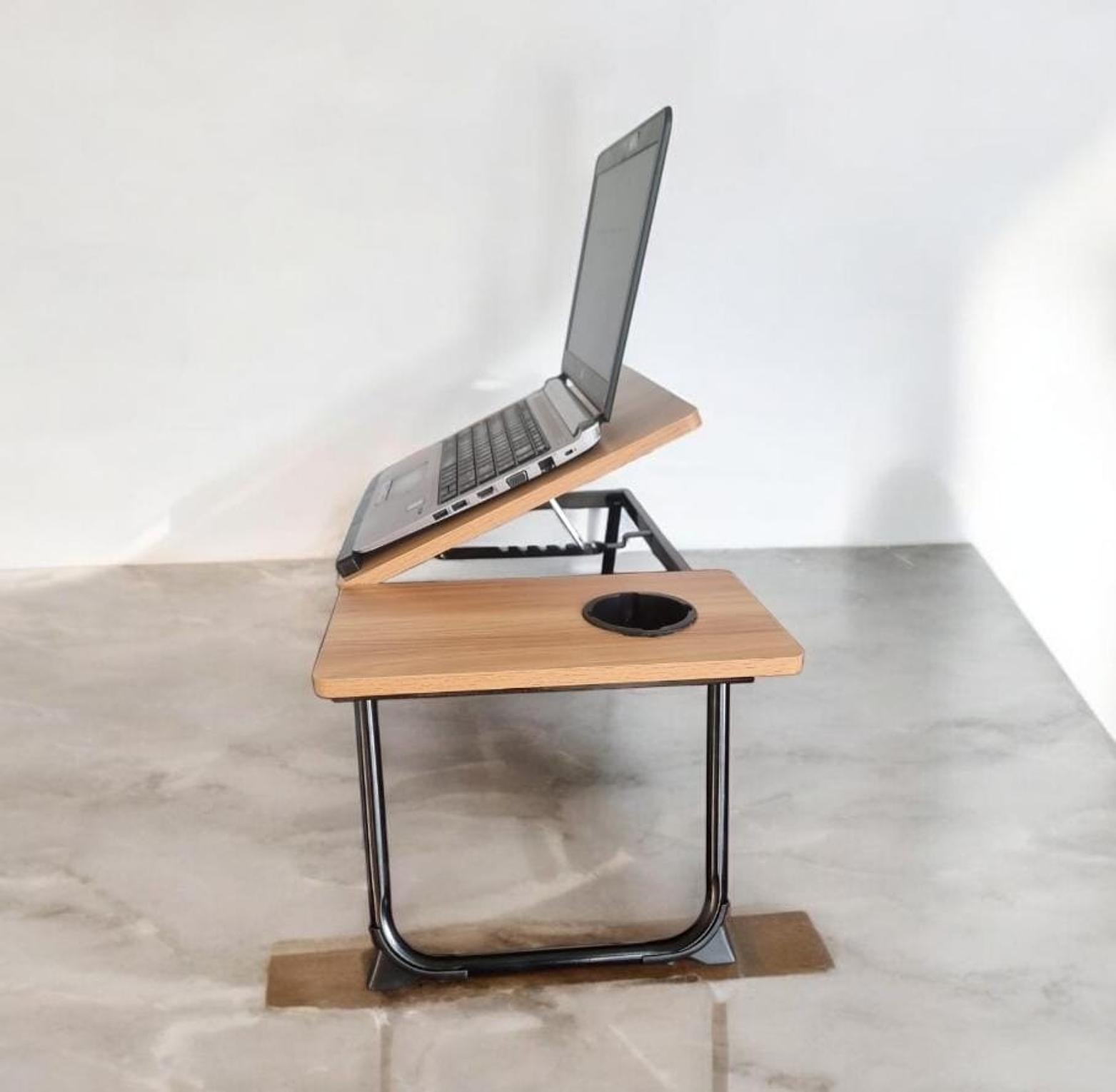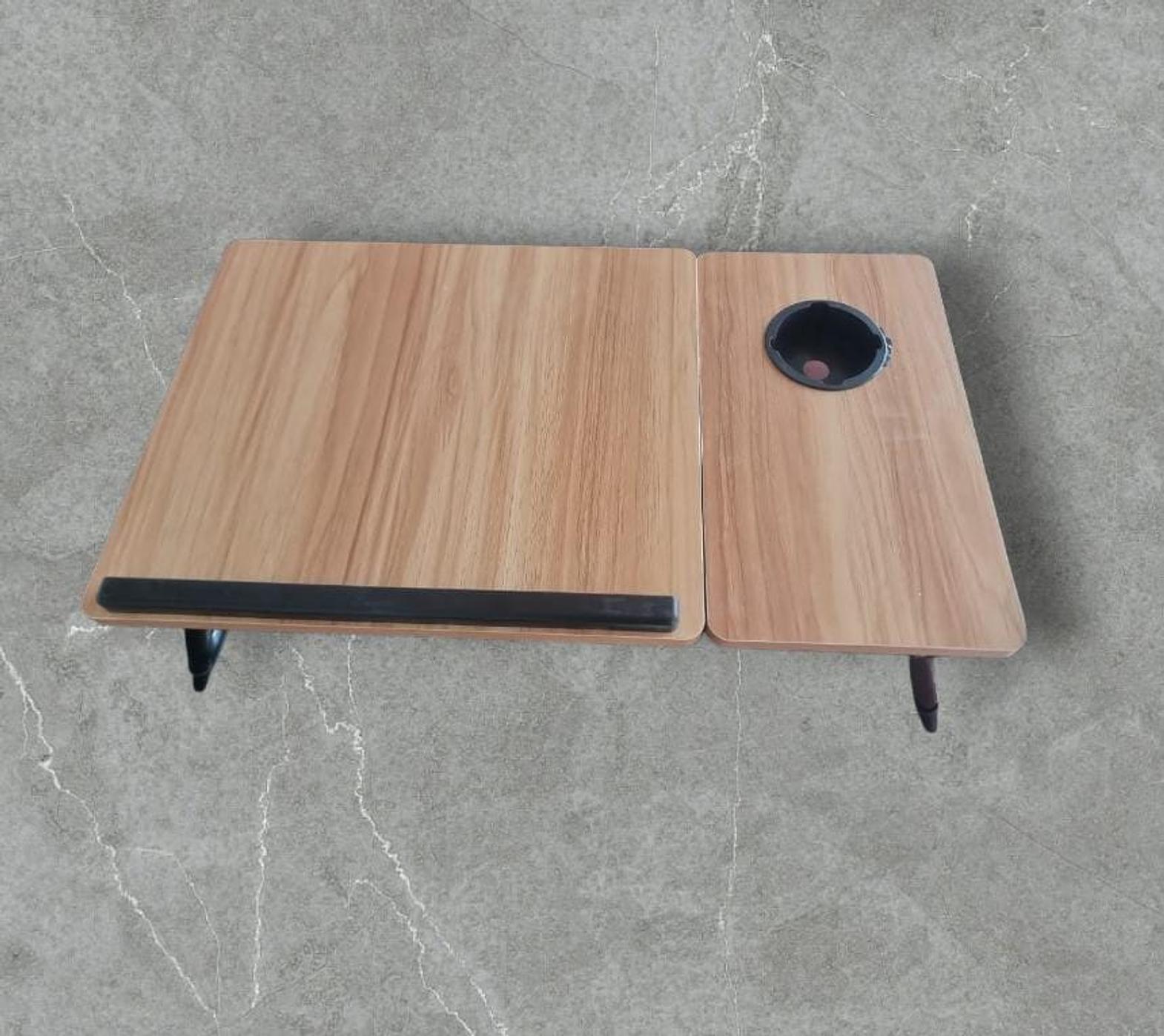 Wooden profile 5 levels Adjustable angle foldable study table or laptop table with cup slot.