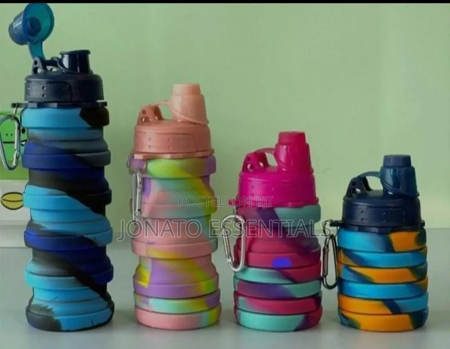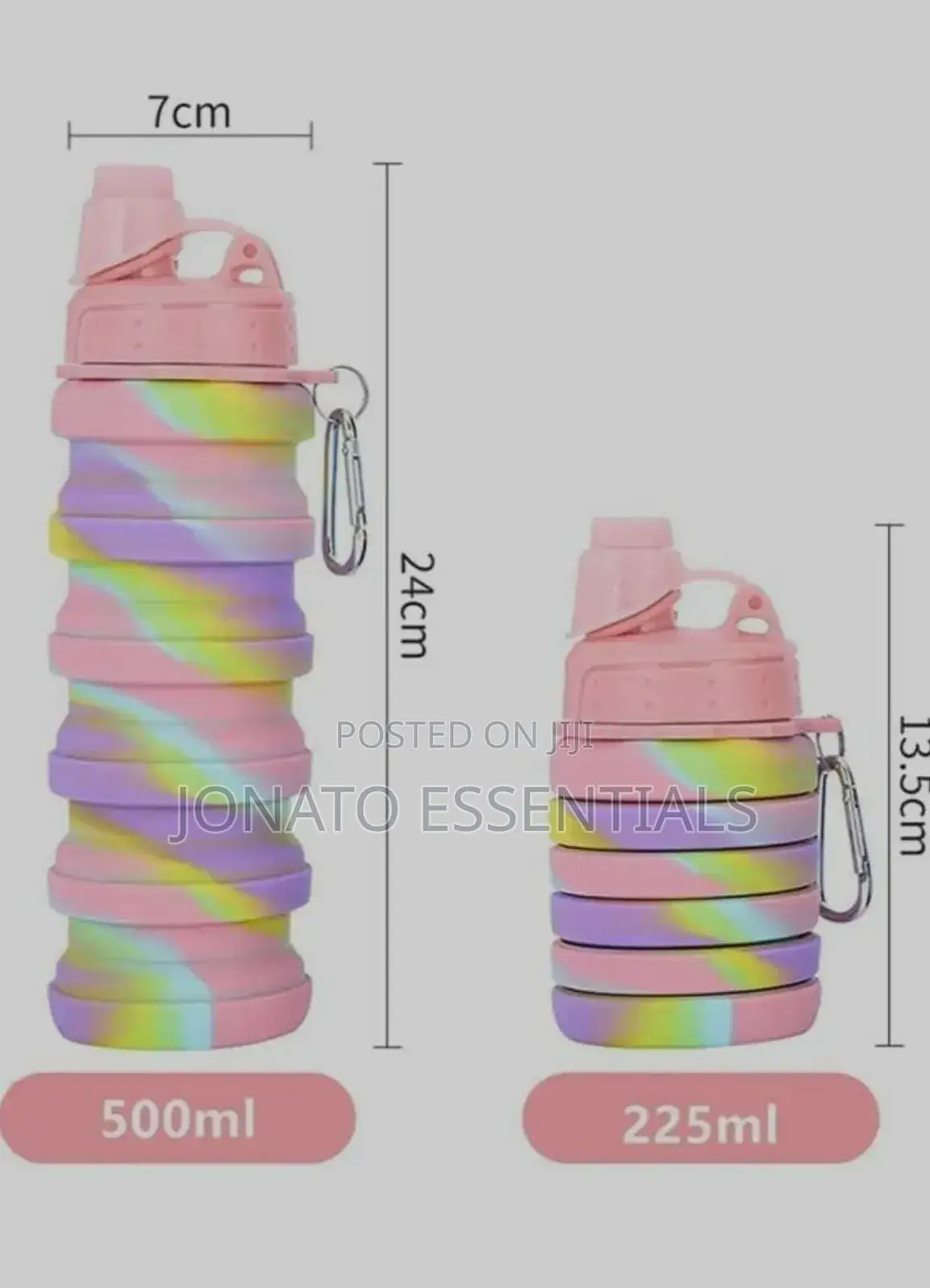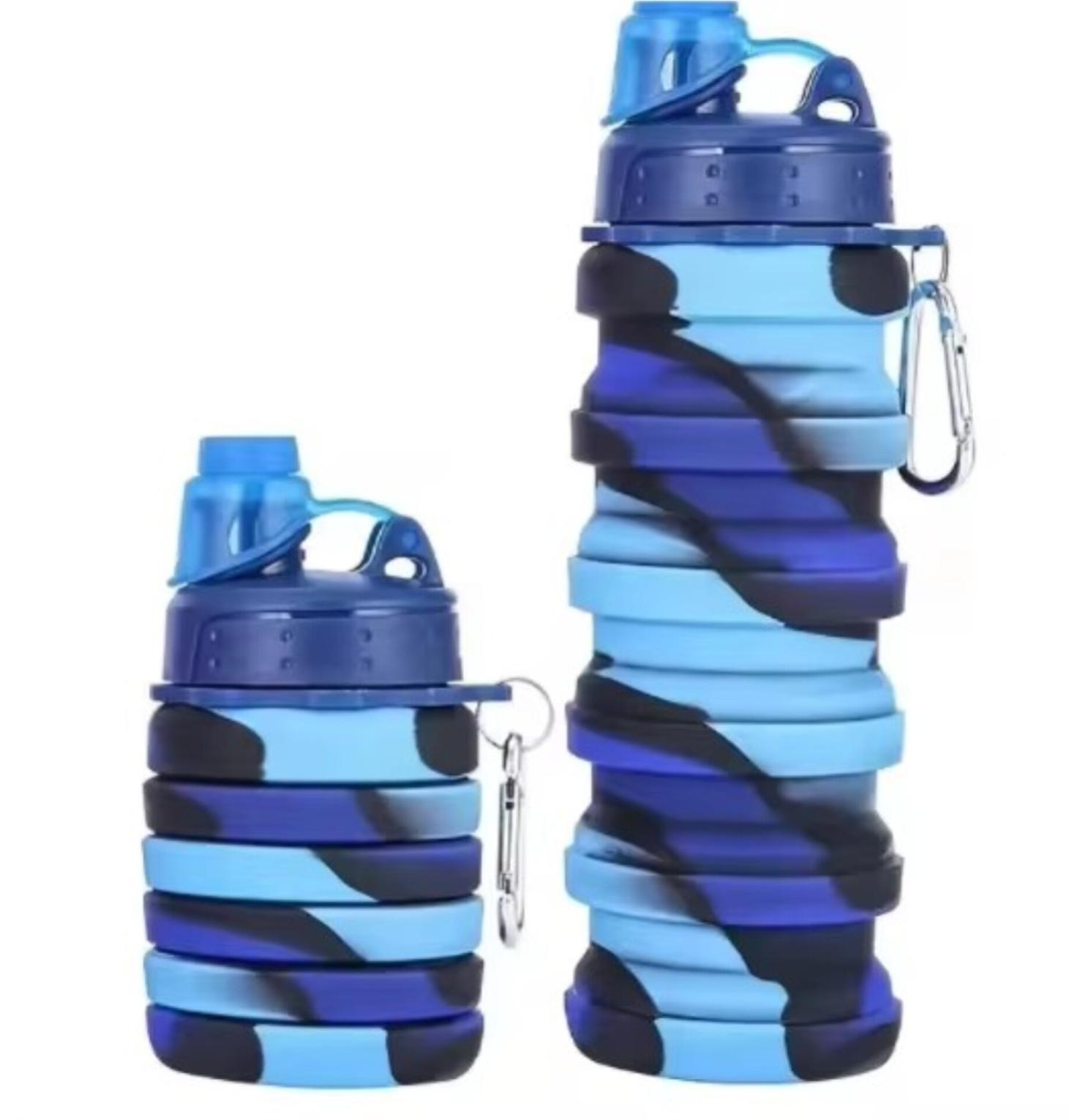 Foldable silicone water bottle collapsible water bottles capacity:500ml material: silicone reusable and eco-friendly :made of bpa-free silicone, this water bottle is reusable and reduces plastic waste, making it an eco-friendly choice. portable and perfect for on-the-go use :the foldable design and lightweight material make this water bottle perfect for carrying around, whether you're at work, school, or traveling. silicone retractable kettle foldable water cup outdoor sports portable kettle colorful cup with carabiner with handle.