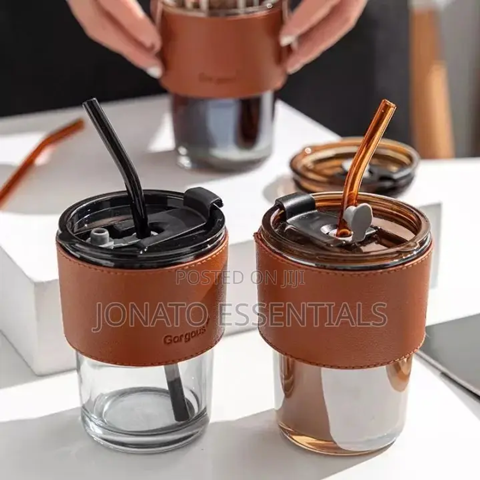 Glass tumbler with straw and lid glass cups with cover + straw + leather sleeveand capacity :450ml 15oz, glass cup with leather protective sleeve, used with straw and/or direct drinking mouth multi-purpose: this bottle with glass can hold any beverage you like, such as: water, juice, iced tea, cold brew coffee, beer, etc designed with high borosilicate glass, which can withstand high temperature of 27°f. reusable boba bottle, iced coffee glasses, travel tumbler for bubble tea