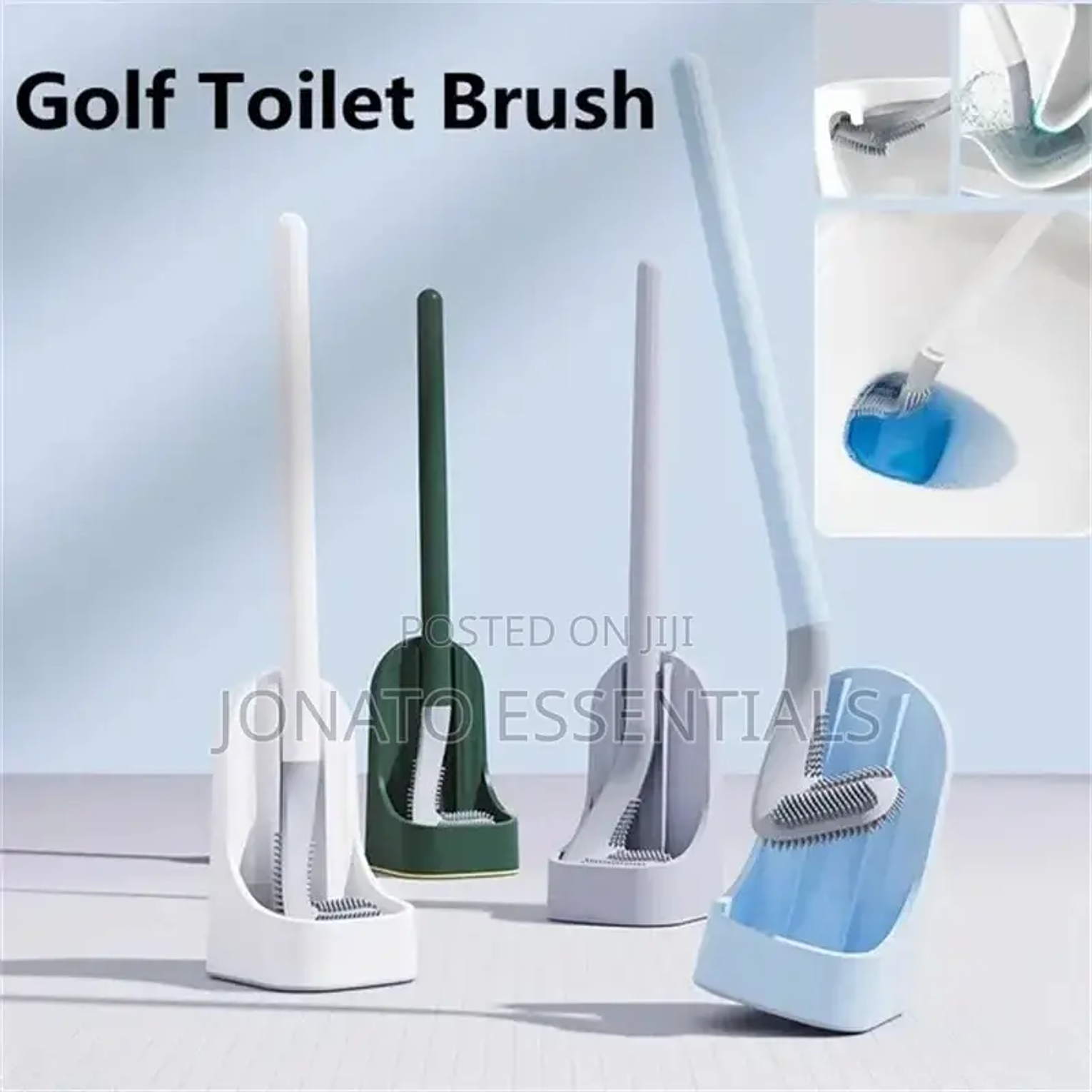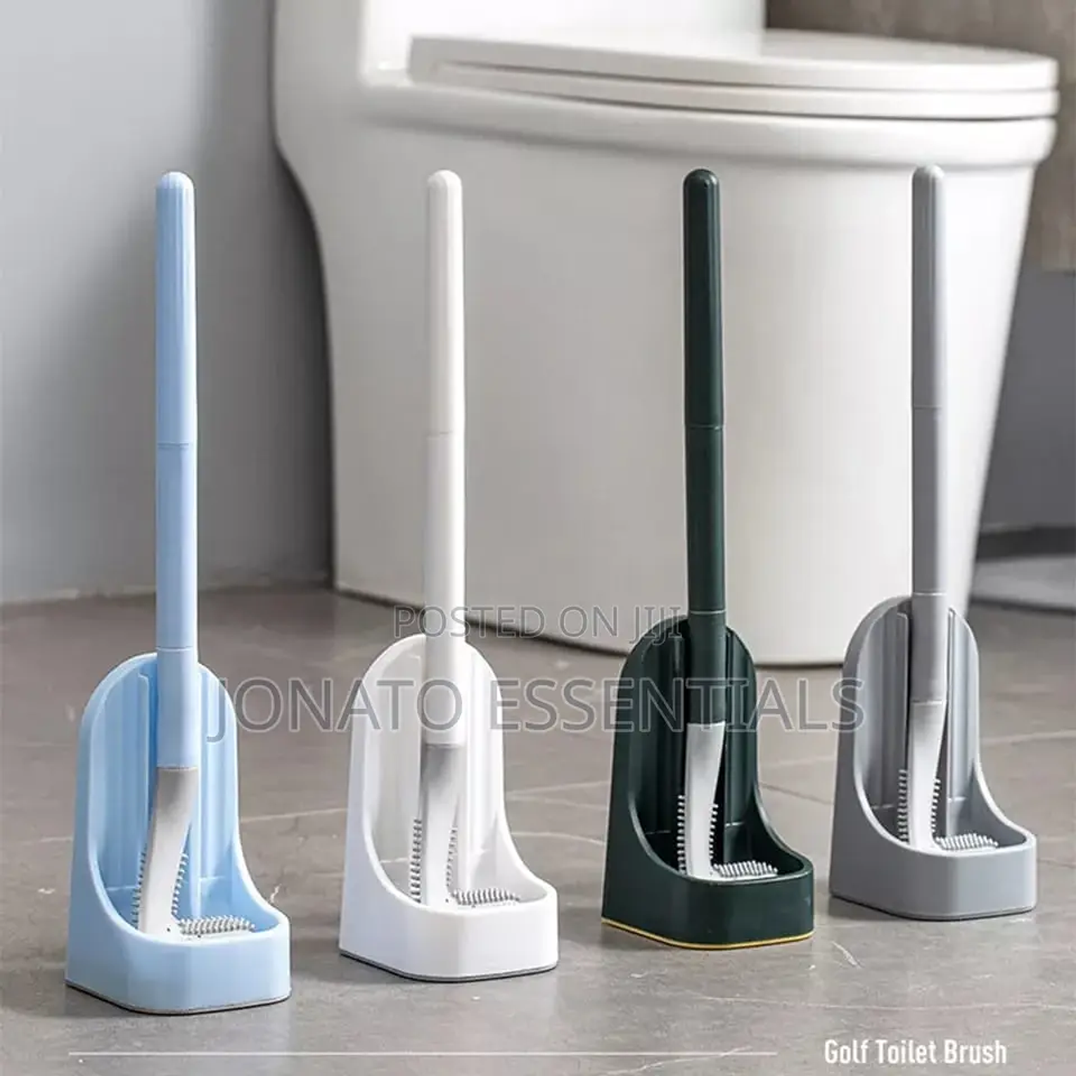 Golf design toilet cleaning brush with holder and long handle plus a base that you can remove. thoroughly clean any corner of the toilet: the unique triangle design of the brush head fits the toilet at every angle, leaving no blind spots. can deep clean any corner of the toilet. easy to clean corners and dark grooves. silicone brush head quick drying long-handled toilet brush corner cleaning brush wall-mounted cleaning tool for bathroom toilet.