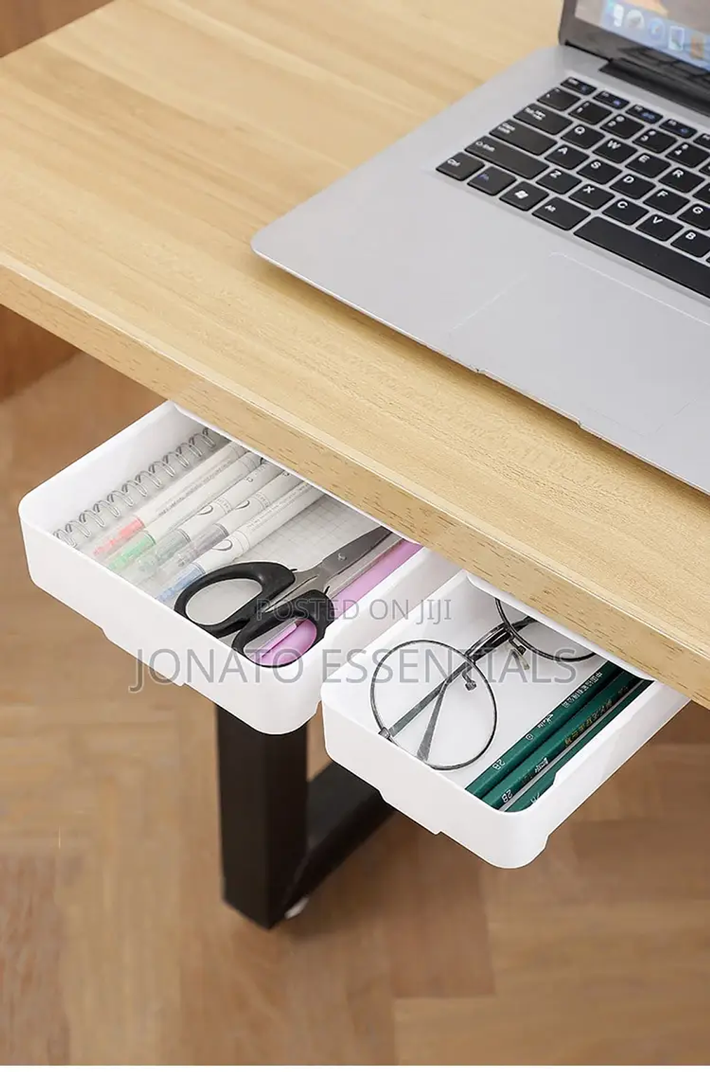 Hidden drawer storage box multi-purpose uses like store money, bills, tissues, cell phones, pens, rulers, scissors, etc. hidden design:you can paste the drawer at the bottom of the table, not taking up any desktop space, better reflecting the storage value of the drawer. it is drawer type, can be smoothly pushed and pulled, making it more convenient to take out things, and does not take up space. self-adhesive hidden storage box desk storage drawer plastic table storage holder simple sundries cosmetics stationery organizer.