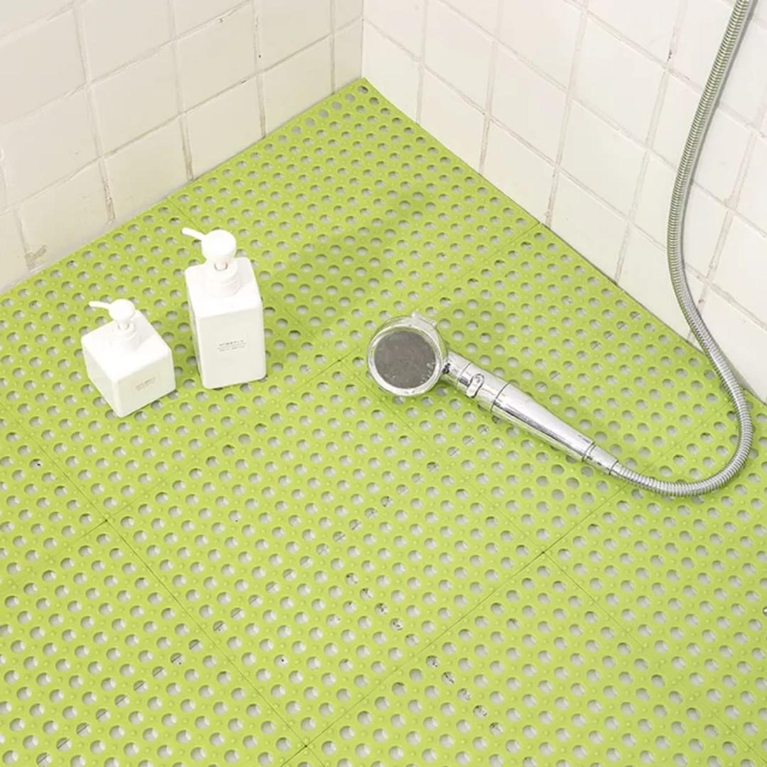 Nonslip bathroom floor mat, antislip shower floor mat inter locking anti-slip bathroom/balcony floor mats stay safe, stylish, and mess-free! quick-dry drainage design easy to interlock & install perfect for bathroom, kitchen & laundry step out with confidence no more slips. use our multifunctional bathroom floor mats to enhance the safety and style of the bathroom. these cushions are perfect for bathrooms or swimming pools of any size. prevent slipping and falling. the non-slip surface ensures a firm grip under your feet and peace of mind under wet conditions. these cushions are very suitable for use in the bathroom, dressing area or by the pool. they are both practical and beautiful. shower room floor mat, bathroom non-slip mat, hollow splicing water insulation bath feet mat, suit for swimming.