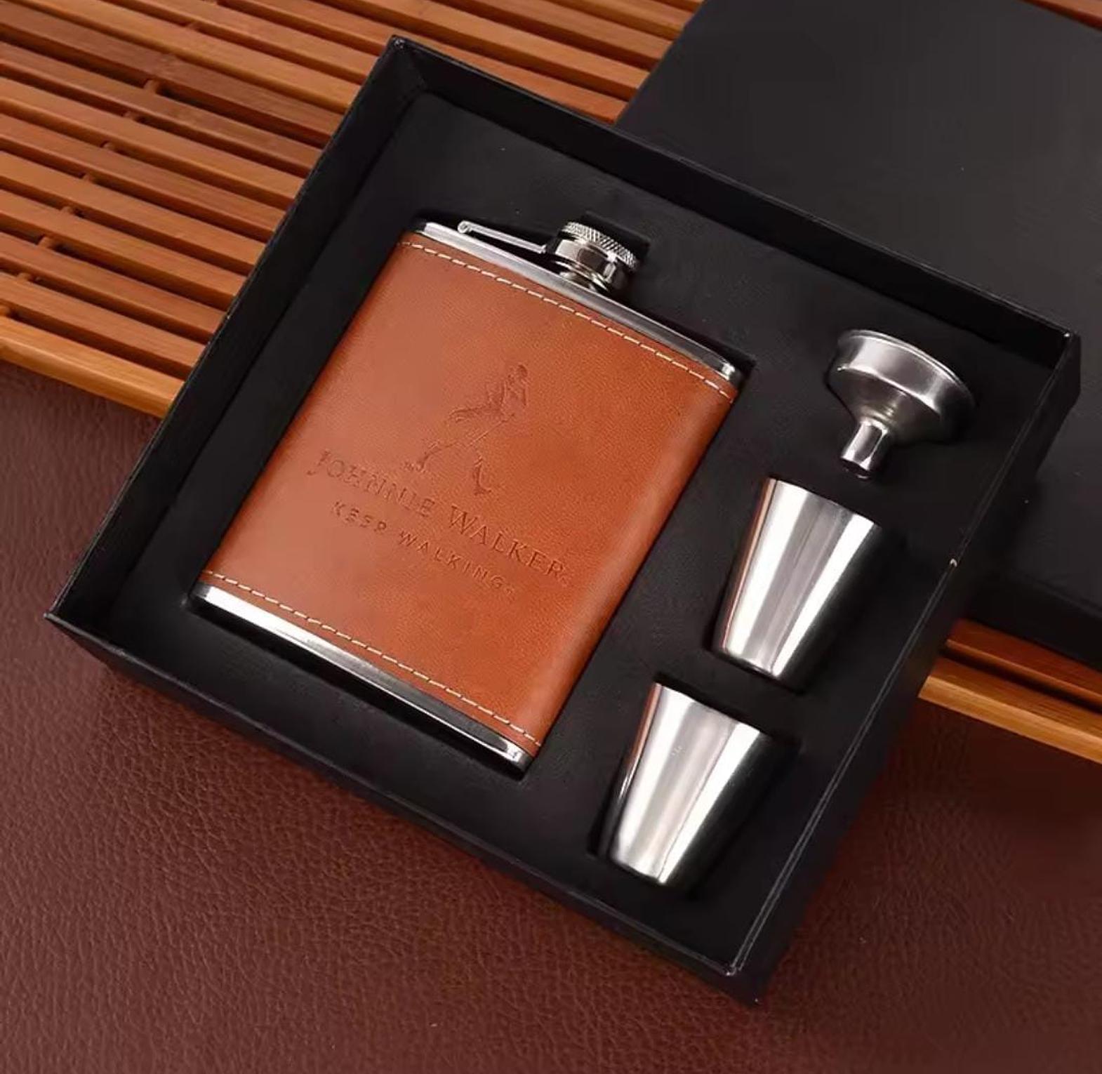 Hip flask Kenya, Johnnie Walker flask, Liquor flask Nairobi, Whiskey flask set, Stainless steel flask, Best gift for men Nairobi, Johnnie Walker flask price Kenya, Leather wrapped hip flask Nairobi, Portable whiskey set Kenya, Pocket flask for drinks Kenya.