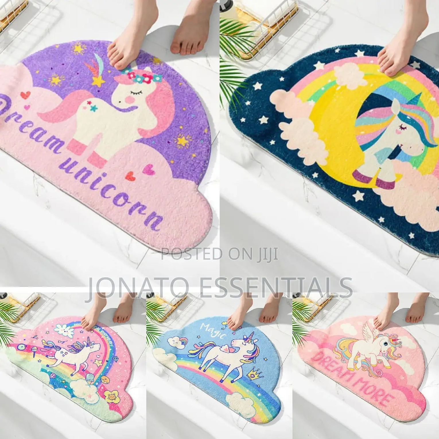 unicorn kids rug, soft bedroom mat, cartoon unicorn carpet, non-slip kids' floor mat, absorbent bathroom rug, fluffy area rug, baby room décor, cute playroom mat, kids’ home accessories