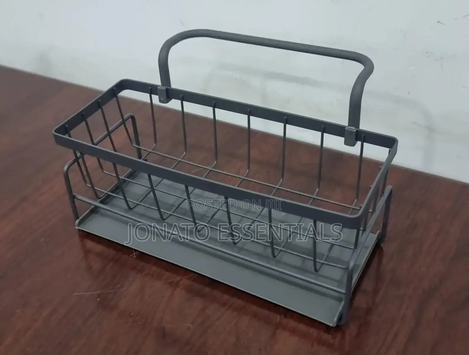 the sponge holder is made of stainless steel, ensuring durability and long-term use. it is resistant to rust, providing a reliable solution for storing sponges and dish brushes.
