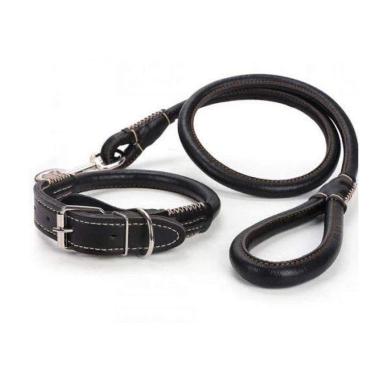 Leather dog collar and leash easy grip rolled up leather dog collar and leash made of pu leather adjustable collar prevents tangling of hair under collar pu leather dog leash dogs long leashes adjustable pet walking training leads brown black colors for medium large pet.