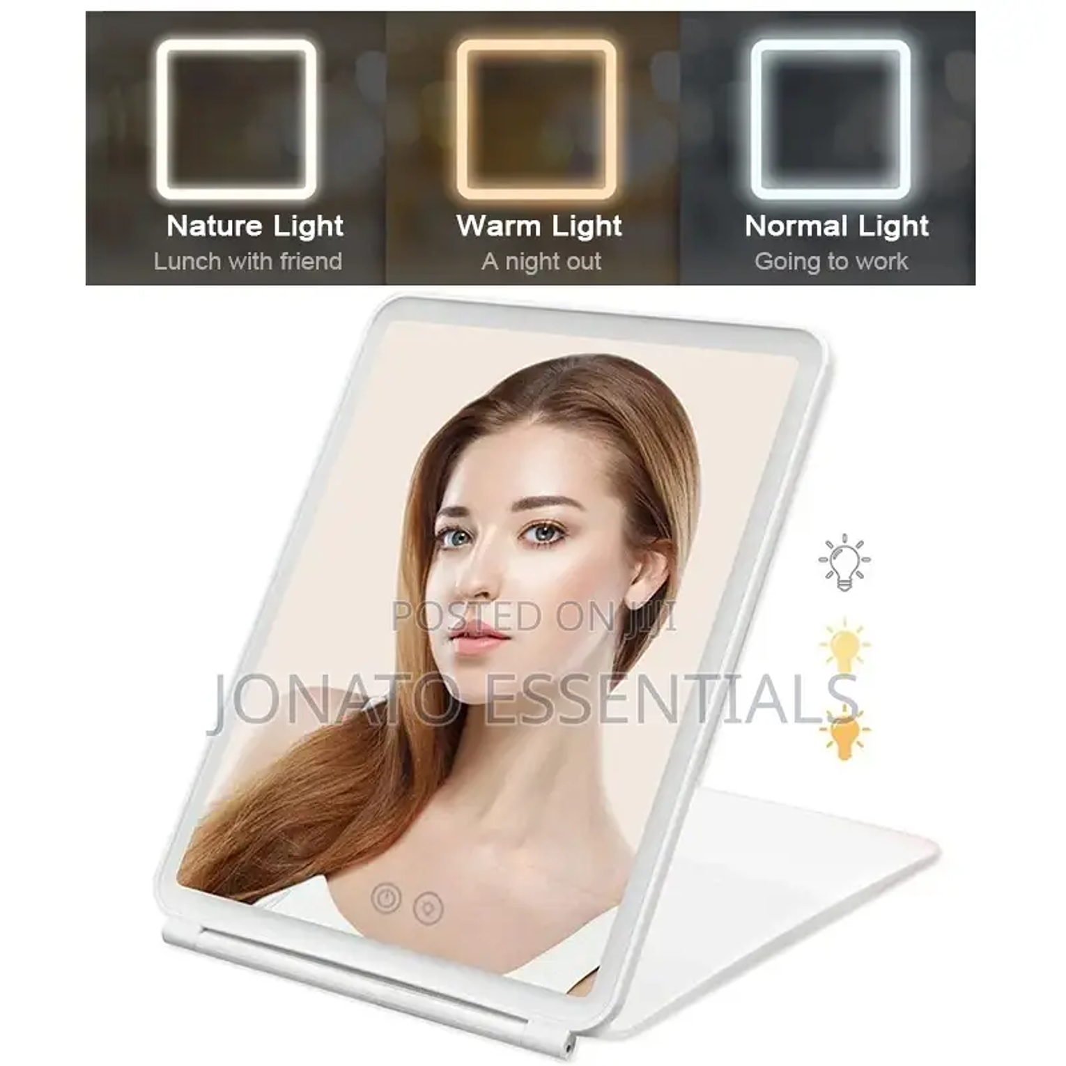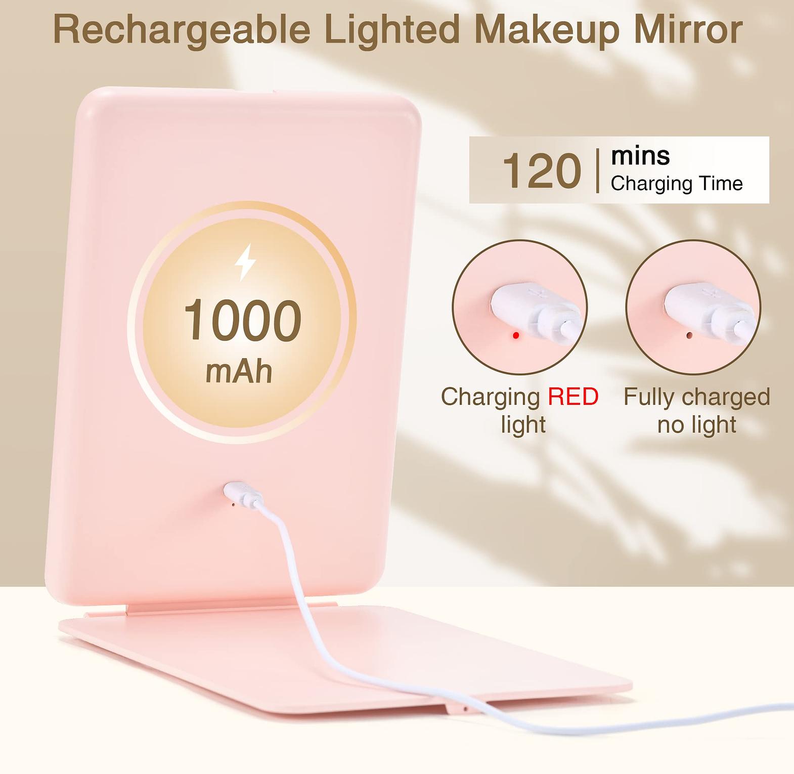 Led travel makeup mirror rechargeable led travel tablet vanity mirror lighted makeup mirror is large enough for your hair and makeup,but with foldable, super light, single sided design that can be easily put into your backpack, suitcase, or locker,and more, perfect for travel, office, outdoor and even at home. portable foldable travel makeup mirror with led light infinity bedroom tocador vanity mirrors cute make up tools accessories.