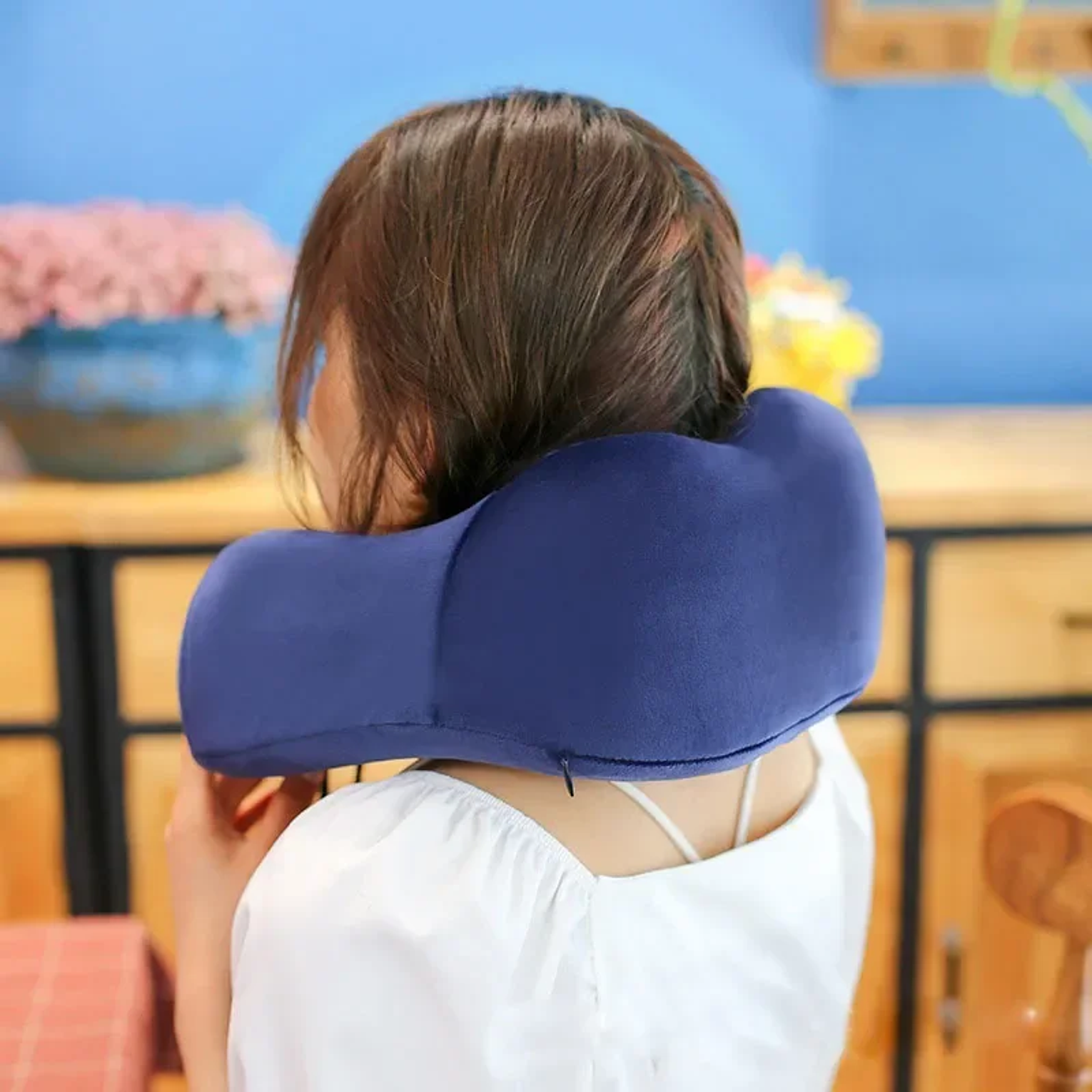 Memory foam travel neck pillow 100% memory foam washable soft casing this pillow can provides extra support to protect the neck from pain when you are sitting in the seat on a plane, car, train or bus. it's also a good ideal for home. when you are watching tv, reading at home, and make you work easier in the office work nap. wrap your neck and free your chin mobile phone pocket slot available u shaped memory foam neck pillows soft travel pillow massage neck pillow sleeping airplane pillow cervical healthcare bedding.