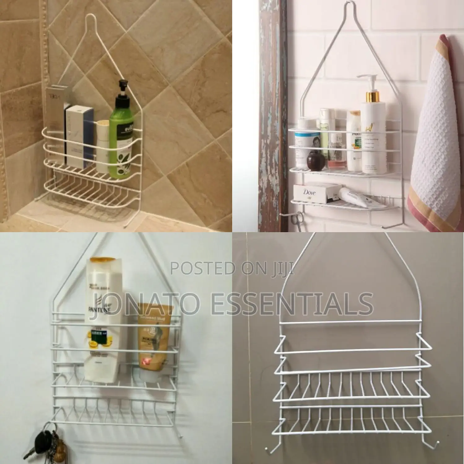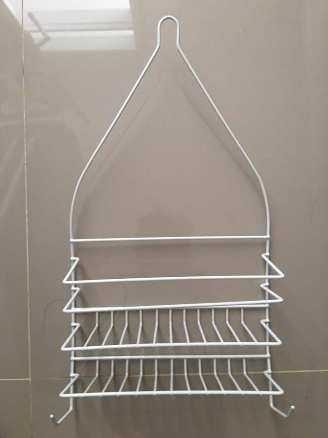 Mini shower caddy, double layer storage shelf. material: painted steel can be used in bathroom and kitchen. use water to clean and dry it with soft cotton cloth. easy to clean. do not rub with the metal and edge tool. shower organizer bathroom shower shelves hanging hook for shampoo, soap, scourers, organizer