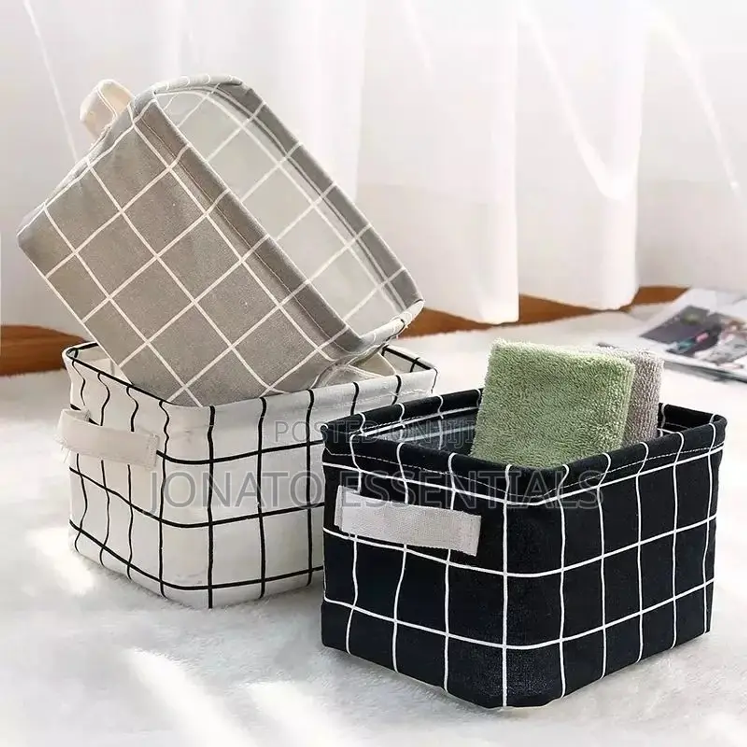 Minimalist storage baskets used to store clean and tidy clothes, towels, underwear, socks, toys, cosmetic, books, foods and other daily necessities. the back is waterproof coating, clean and health, not easy to breed bacteria. folding linen desktop storage boxes waterproof cosmetic underwear collect basket office stationery organizer accessories stuff.