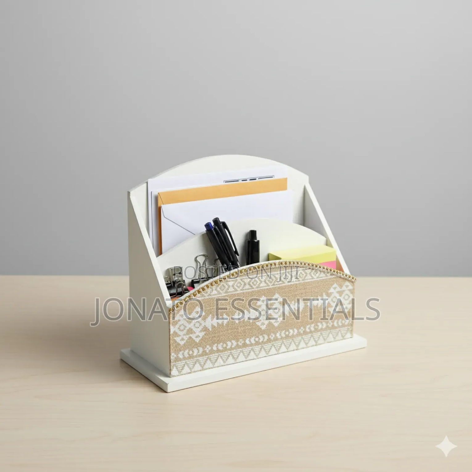 transform your workspace with this chic and functional wooden desk organizer, perfect for home offices and studies in kenya. it features multiple compartments to neatly store your pens, mail, notepads, and stationery, helping you work smarter and stay productive. the unique woven design adds a modern, rustic elegance that instantly elevates your decor, unlike common plastic trays. made with quality, durable materials for lasting use, this versatile organizer is a must-have for professionals seeking style and organization.