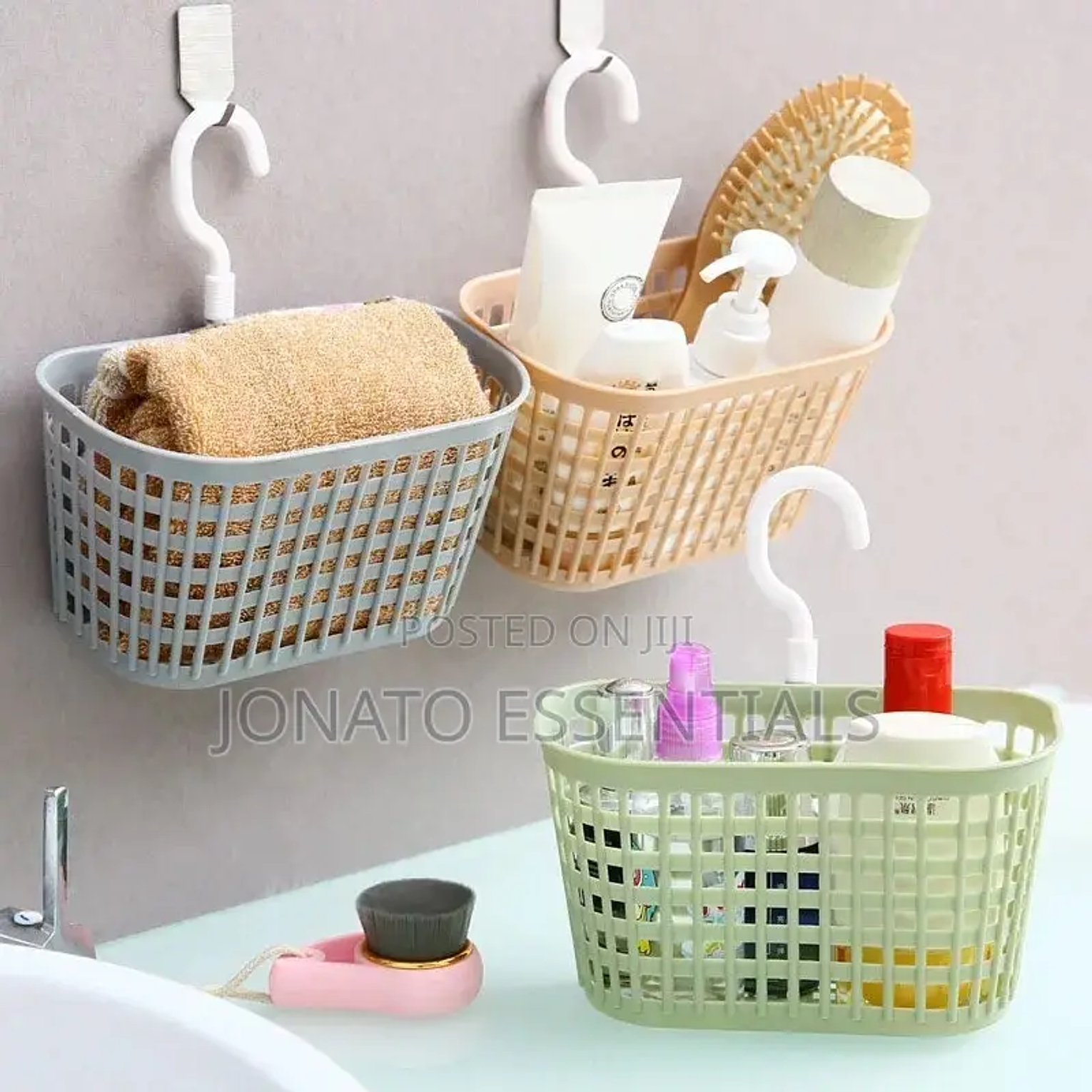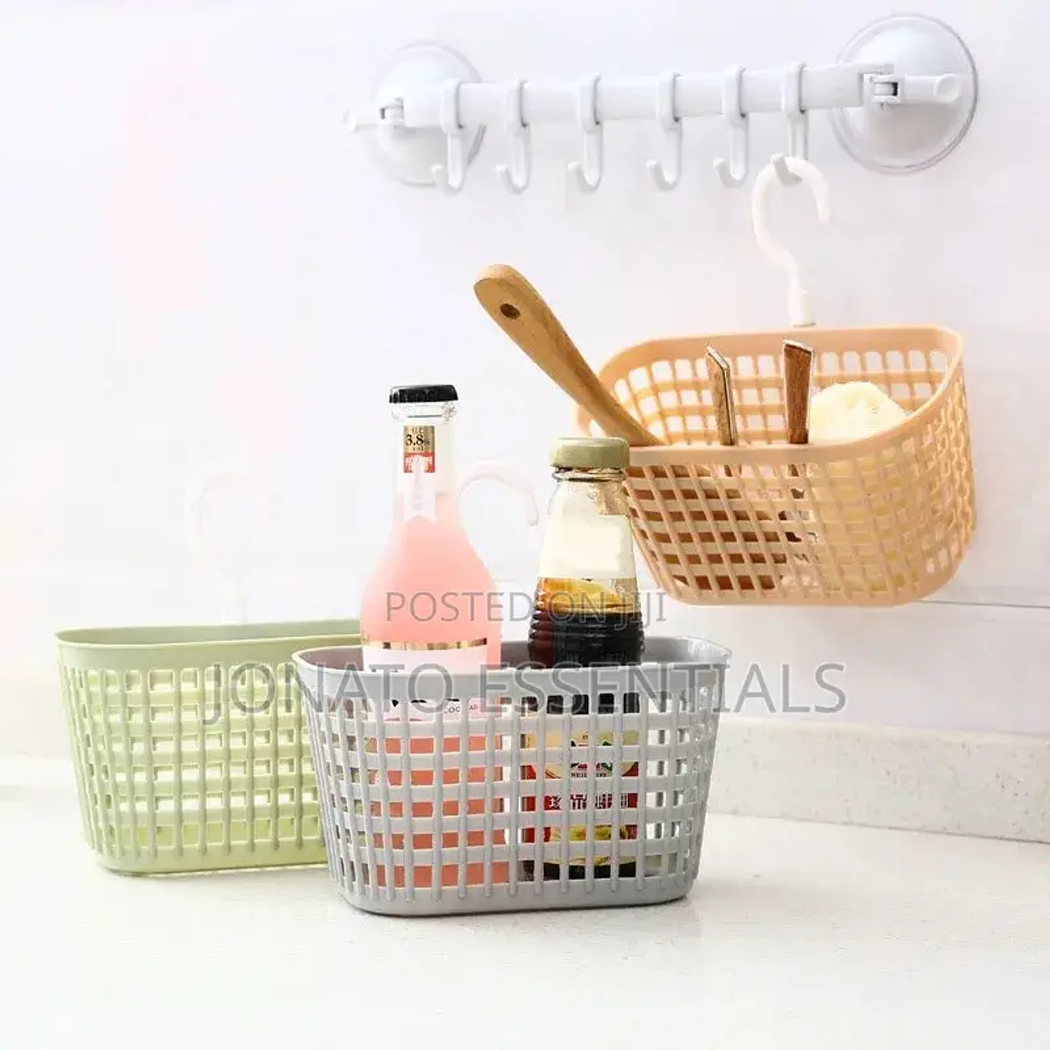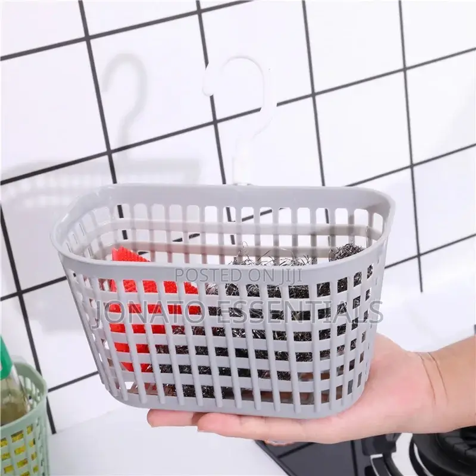 Multipurpose hanging storage basket slay baskets draining hanging basket, sturdy and durable, the hook can be rotated 360 degrees high-quality abs, hygienic and environmentally friendly the hollow design keeps items dry and is not easy to breed bacteria sundries hanging basket storage drain bag bath storage basket sink holder soap holder kitchen bathroom storage organizer.