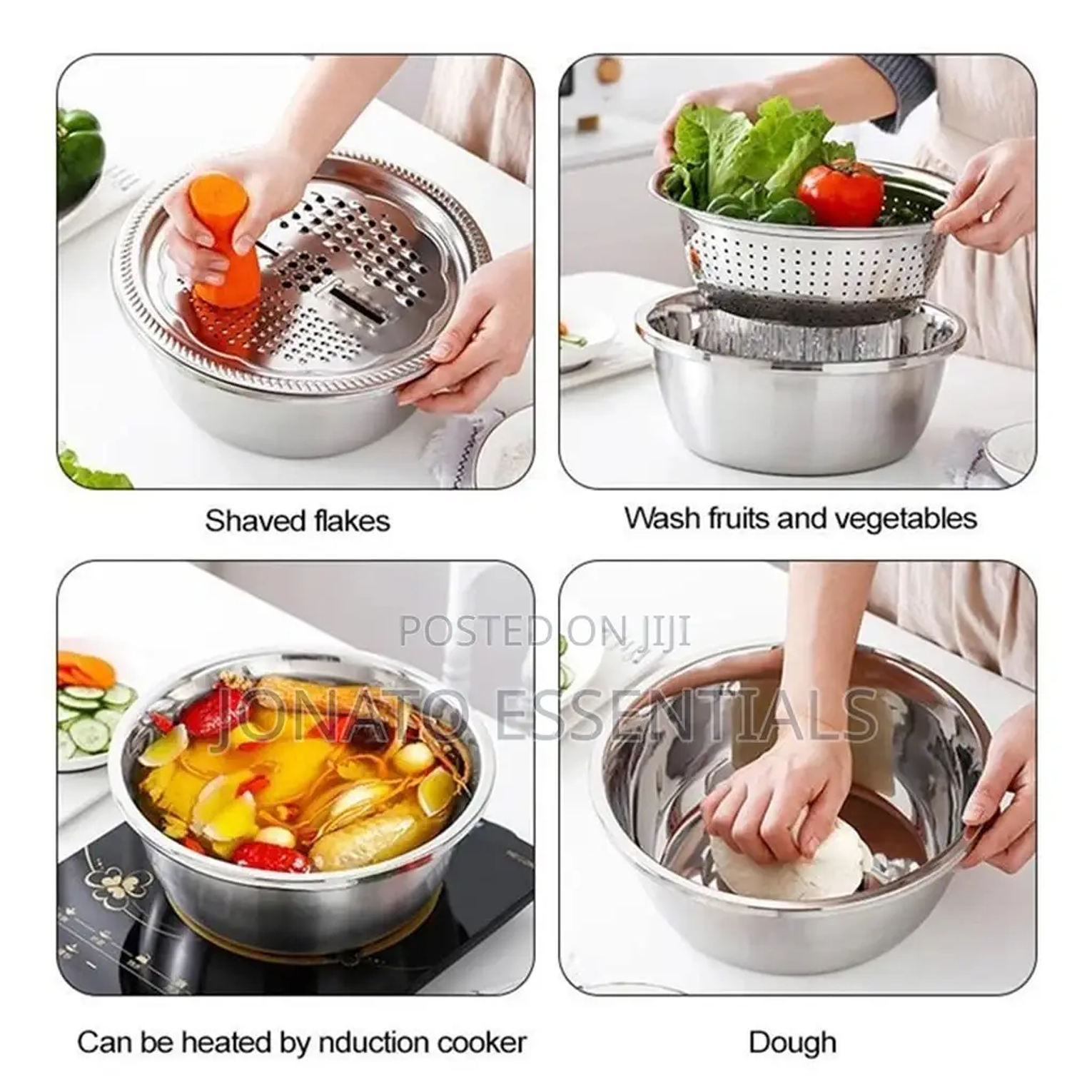 multifunctional kitchen cheese grater, stainless steel drain basin for vegetables, fruits, rice, carrots and salads.