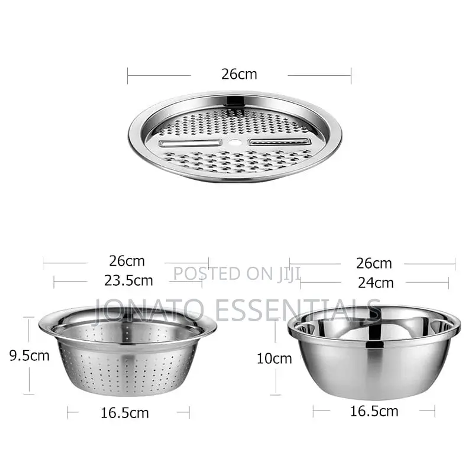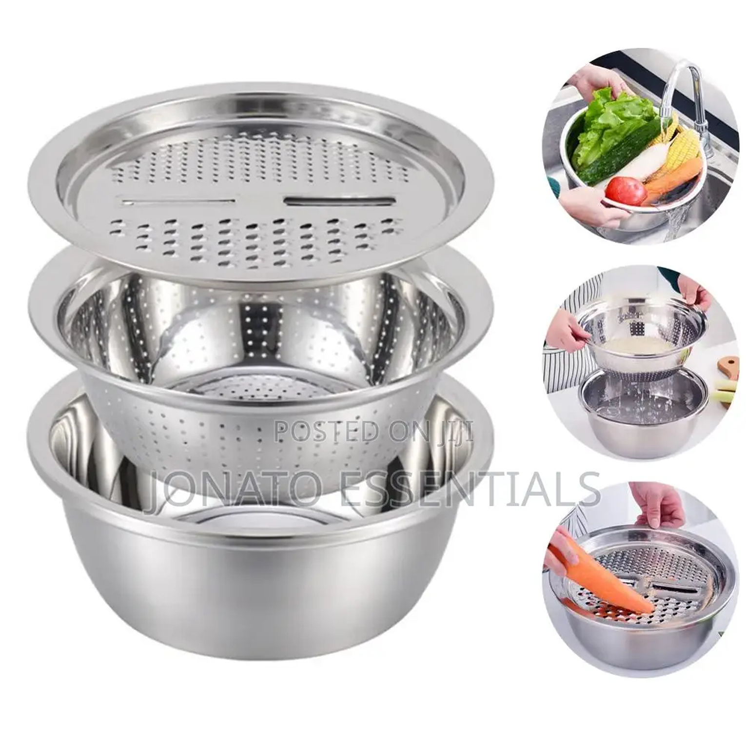 Multipurpose stainless steel 3 in 1 grater, colander & bowl