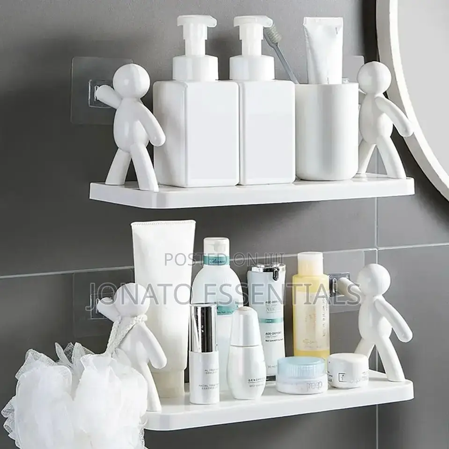 Multipurpose storage shelf or rack villian shelf bathroom villain shelf organizer strong load-bearing, nail free installation, round edges and corners, strong waterproof, large space, material the space for placing condiment bottles in the widening and lengthening storage area is clean and fresh large capacity for easy access to daily washing and care supplies easy storage toilet adhesive shampoo gel storage body decor bathroom corner shower shelves rack accessories.