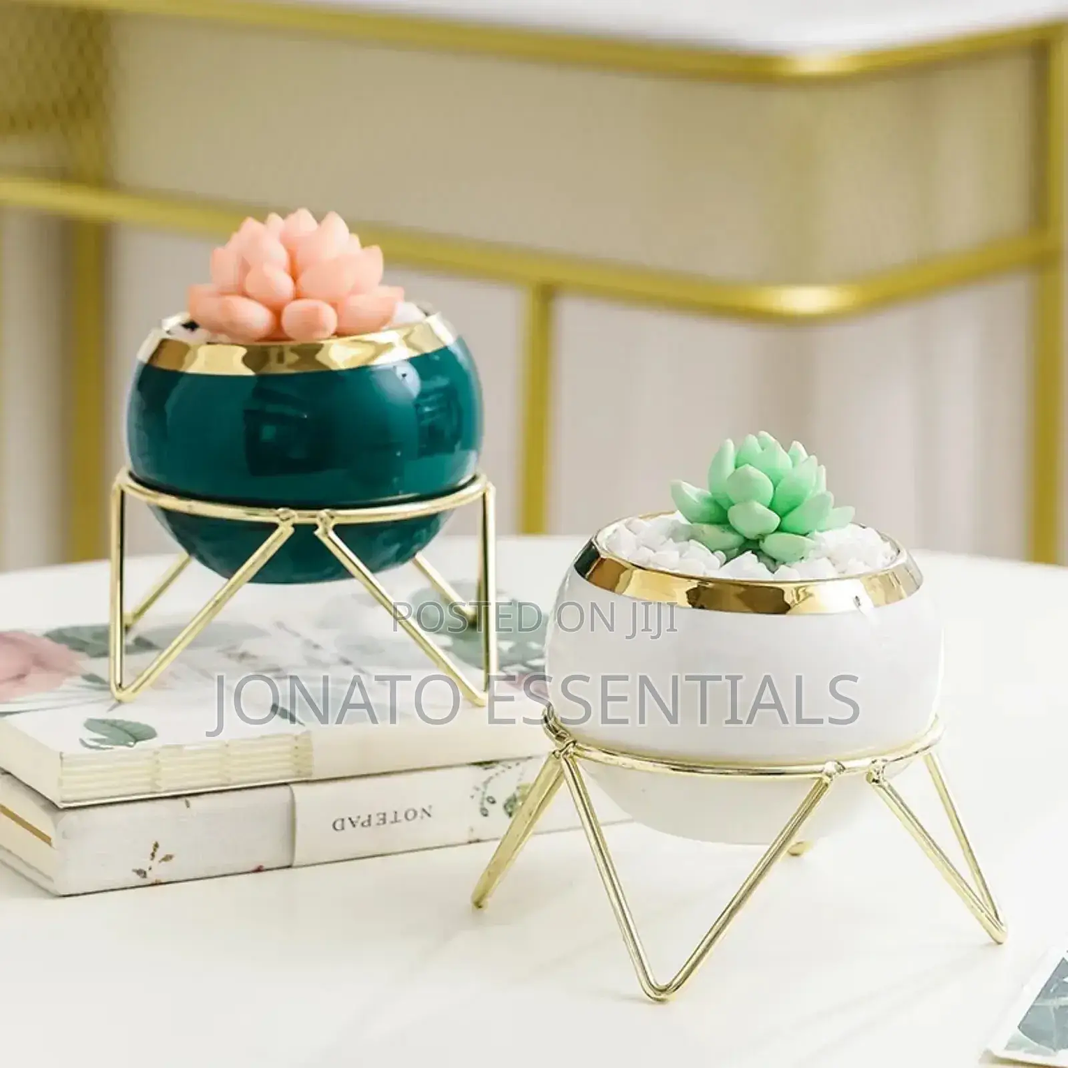 Nordic succulent plant flower pot comes with no flowers comes with gold stand. perfect for home and office decor. nordic succulent plant flower pot /decorative ceramic gold flower pot with no flowers.