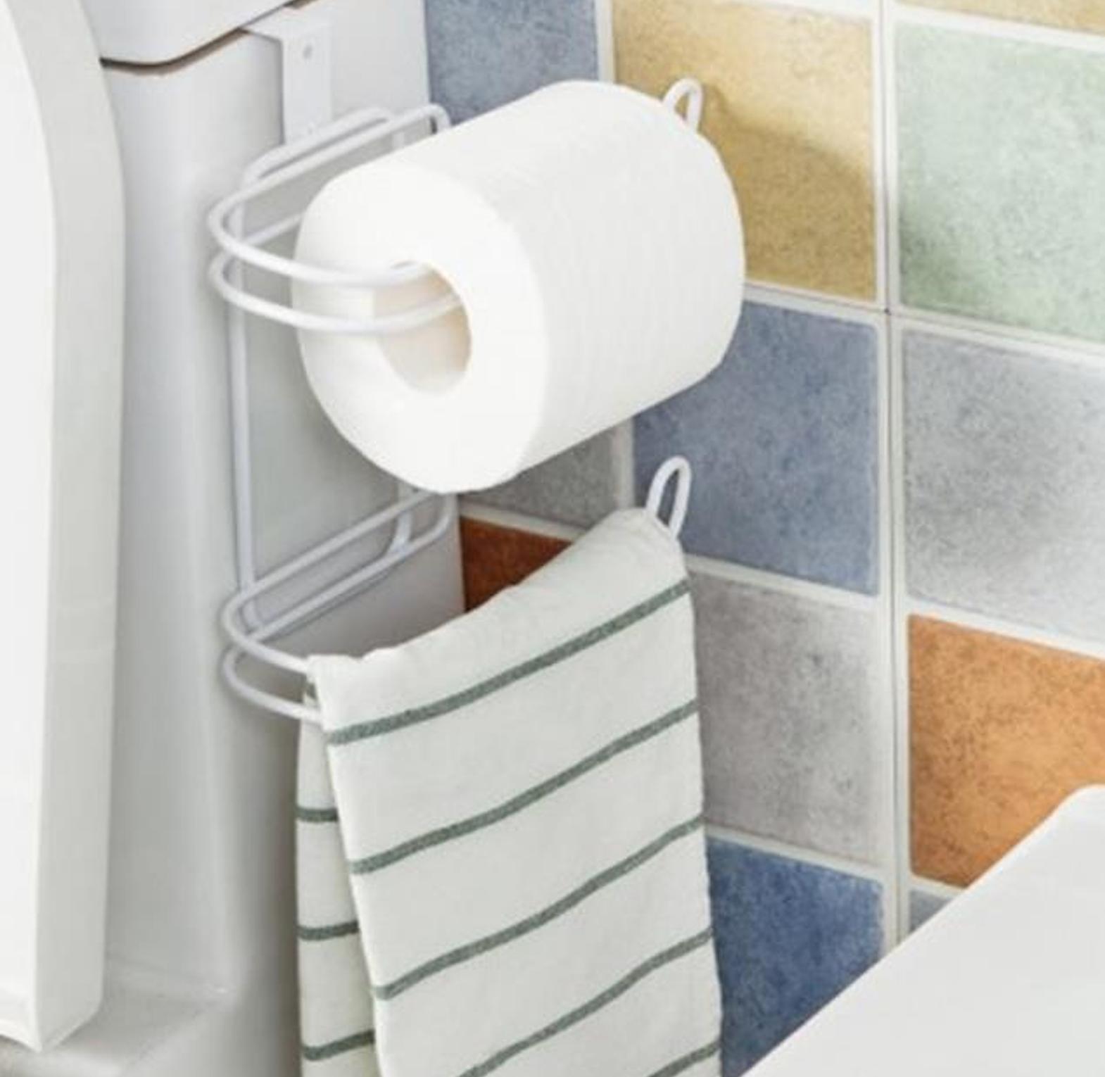 This is the best toilet paper holder under 500 KSh for renters. It features a simple hook design that slides right under your tank lid. You get two tiers of functionality: a sturdy arm for your tissue roll and a lower bar for a hand towel or an extra roll. It’s practical, minimalist, and keeps your bathroom looking neat and organized.