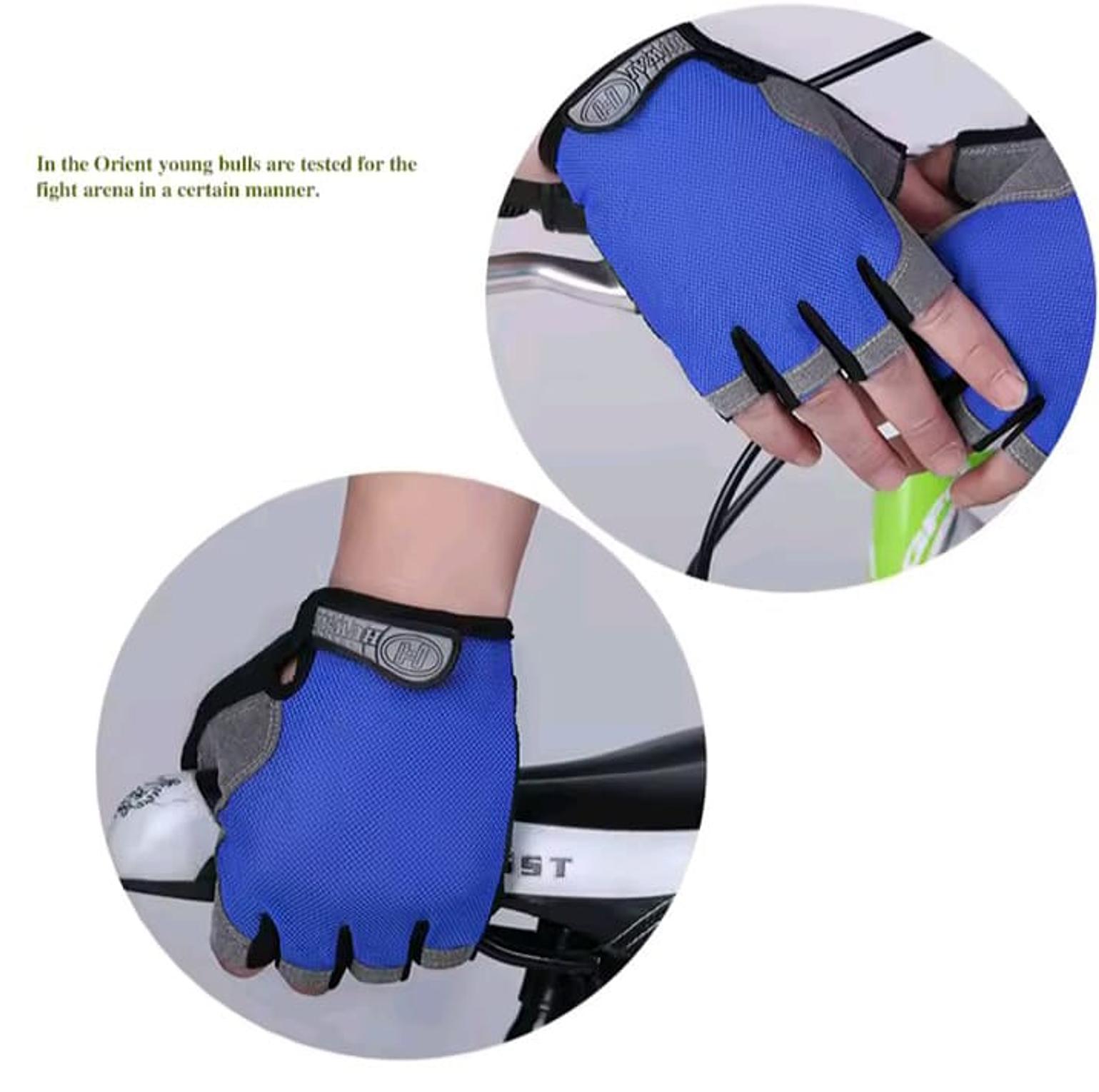 Pair of gym, cycling gloves gym anti slip half finger gloves breathable dumbbells gloves comes as a pair. breathable mesh fabric on top and airflow hole on palms to enhance sweating circulation. foam padding on the palm absorbs vibration and offers improved comfort on long trip. half-finger coverage for freedom movements and safe grip while riding. fastener tape closure to keep gloves in place fit for men and women. men women elastic shock exercise sports gloves for cycling bicycle.