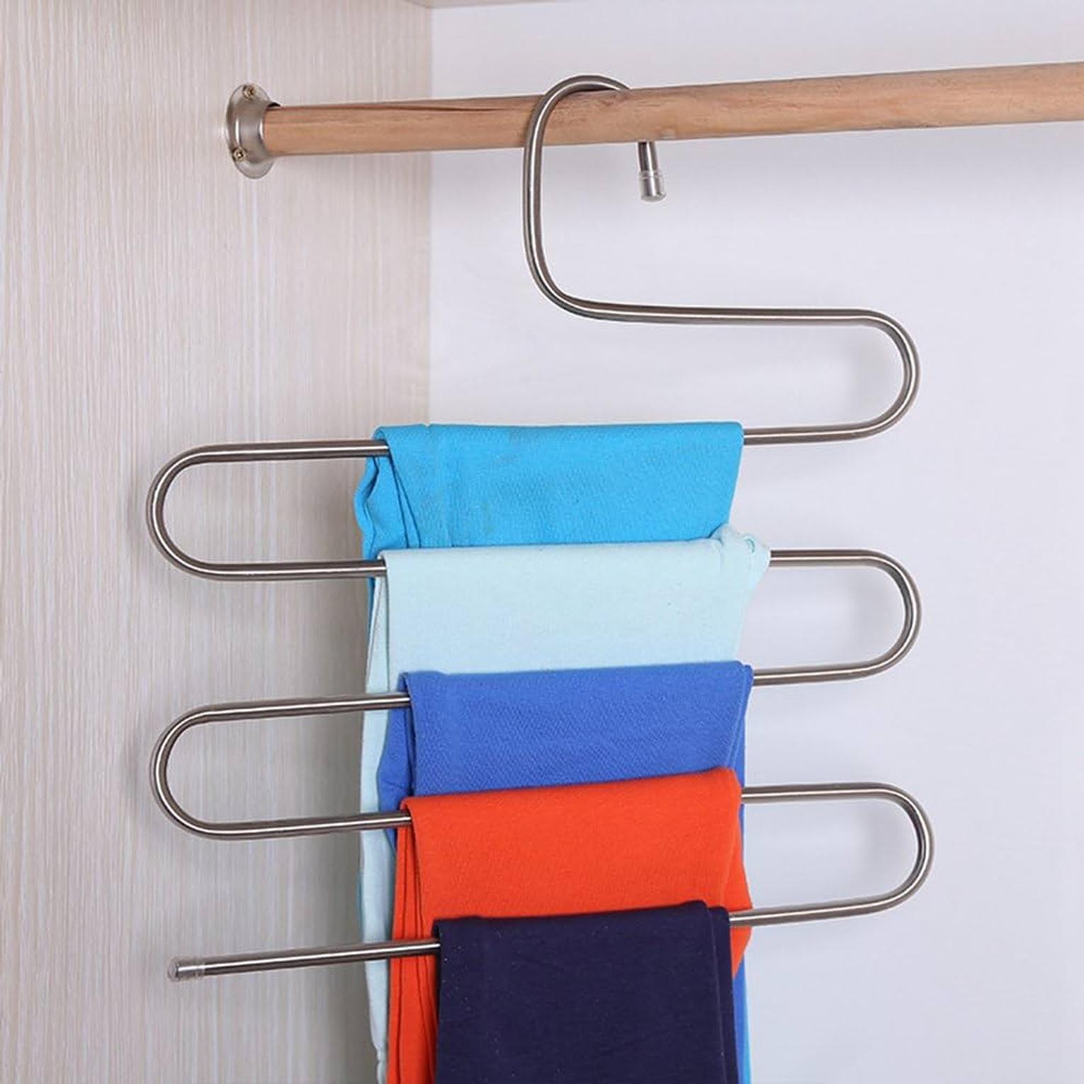 S shaped 5 layer trouser hanger, cloth rack there are more and more clothes, especially in winter. scarves and leggings are piled up all over the kitchen, making it difficult to put them down? the clothes and pants look wrinkled when taken out, so they can't be worn? 5 layers stainless steel clothes hangers s shape pants storage hangers clothes storage rack multilayer storage cloth hanger.