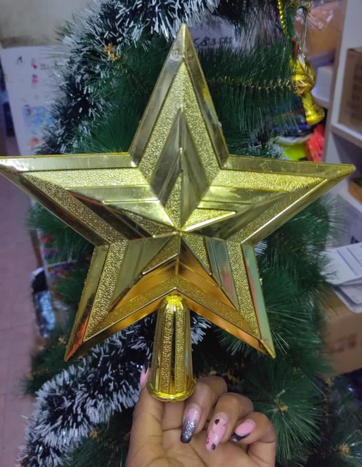 Christmas tree topper Kenya, gold star tree topper, shiny Christmas decor Nairobi, affordable holiday tree topper, festive gold star ornament, Kenyan Christmas decorations, easy install tree topper, sparkling gold Christmas star.